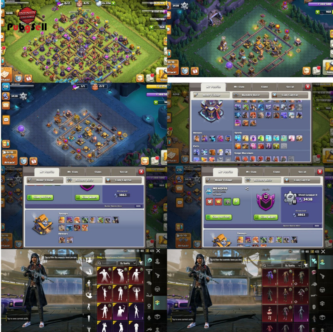 با سلام یک عدد اکانت کلش و اکانت پاجی موبایل که کلش لول 216 تاون 15مکس هستش فقط دیوارا مونده و پابحی هم 4 گان ابگریدی 5 سیزن الایت مکس..... فیلم موجوده سیزن از 16 قدیم پلی خورده