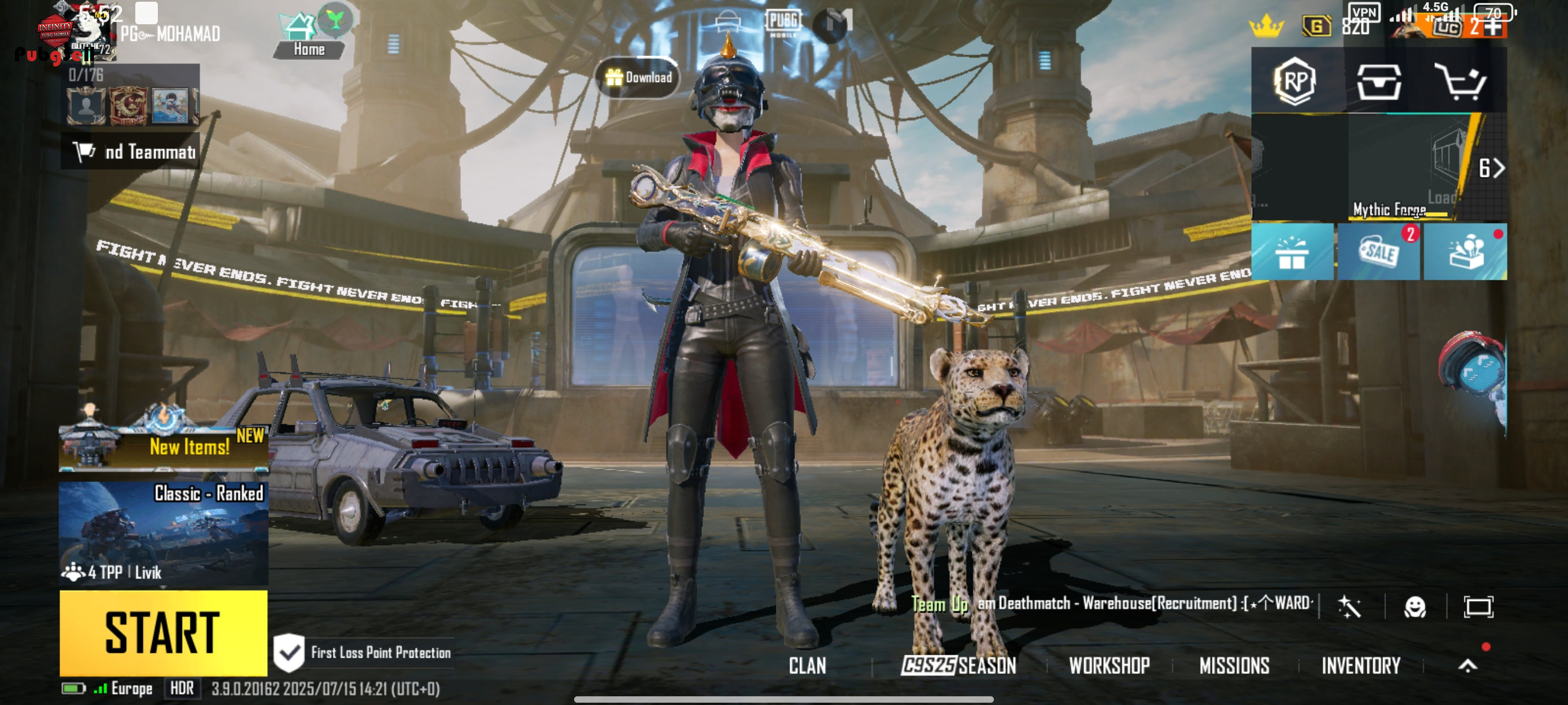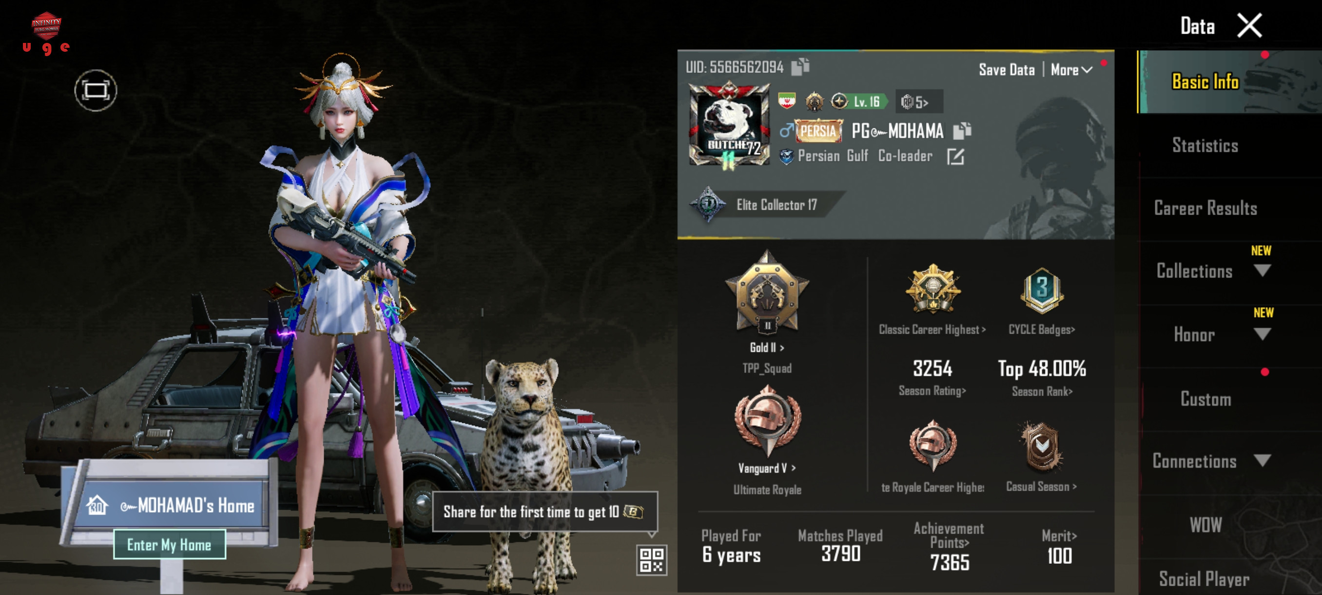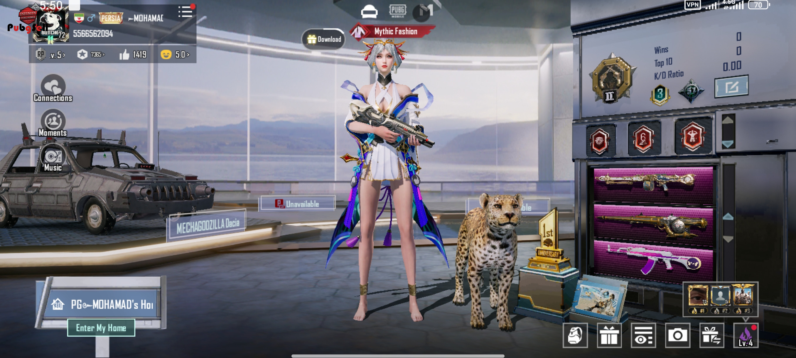 هلمت اینفرنو داره. ایکس سوت لول دو داره. 25 گان آپگریدی داره. 2 تا متریال کامل با 2 تا جم متیک فورج داره. حیوان خانگی پلنگ رو داره با دوتا از اسکین های لجند گرگ. لول خونه رسیده به 30 و اسکین شیر متیک رو باز کرده و فقط کافیه شیر رو بگیری،شیر 200 پوینت میخواد که 184 تا داره یکم مونده شیر باز شه. لول کالکشنش 57 اکانت هم 72 از سیزن 8 قدیم بازی شده خیلی قدیمیه اسکین های با ارزشی داره. حدودا 70 یا بیشتر متیک داره و متیک فشن هم داره. نید و مولوتوف هم کیل مسیج هستن. خیلی چیزا هست که نگفتم ویدیو رو ببین همه چی معلومه اونجا...