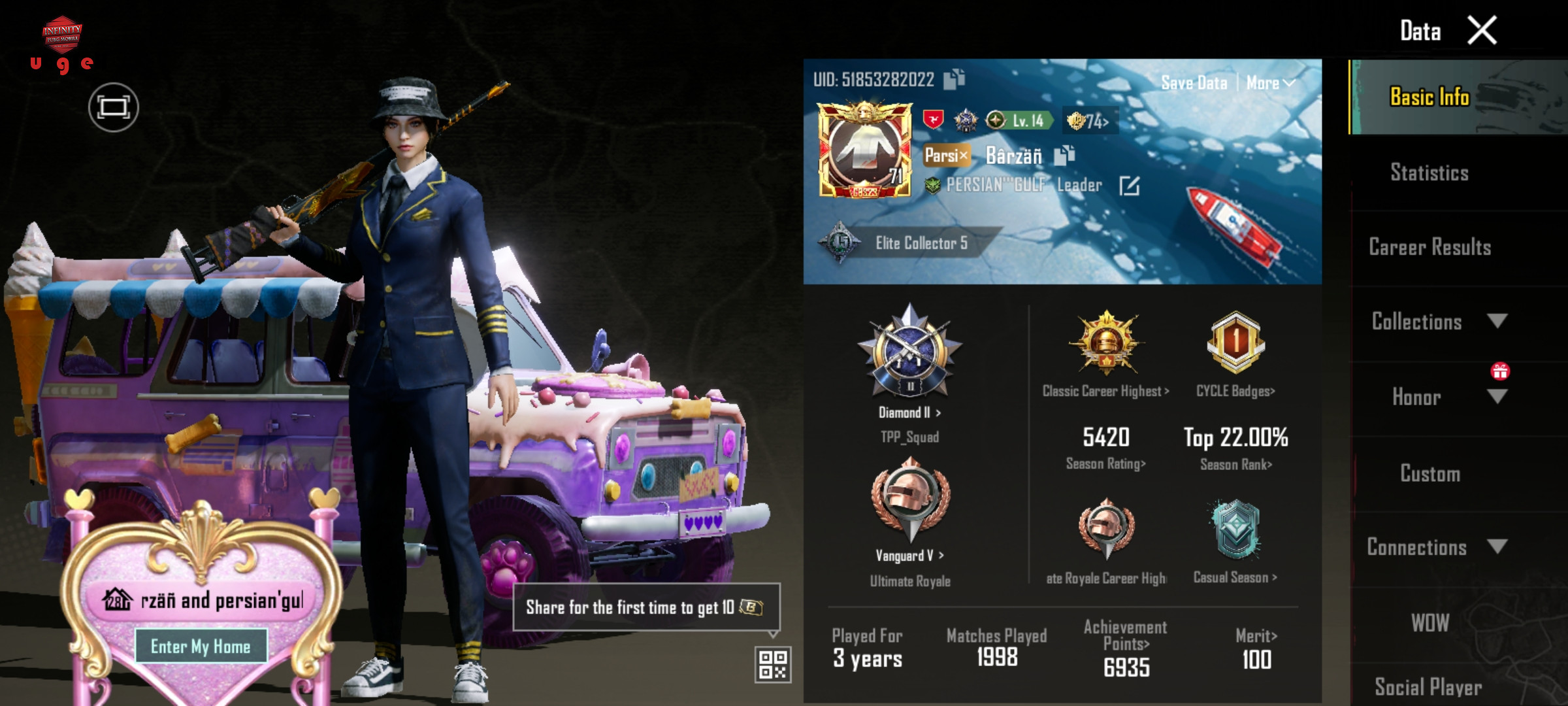 کانکور شده لباس اچیومنت داره 3 تا ماشین اپگریدی داره ارپی مکس بشه 360 تا یوسی میشه