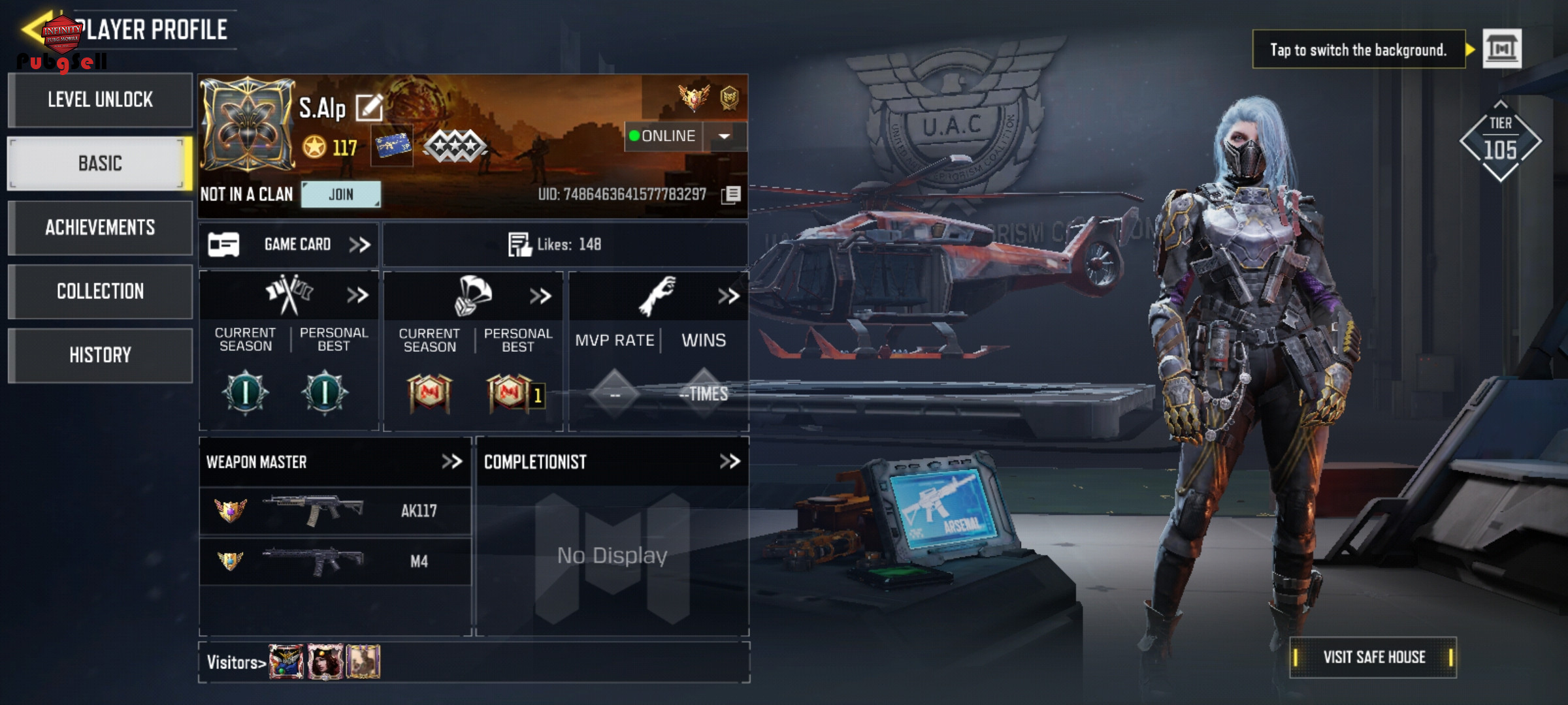 فول گردونه Grim Ending 🔥 🔥یک گان متیک AK117 Grim Ending 🔥پنج گان لجند 🔥Ak47-Icb rifle 🔥Cr56-Amax Bass drop 🔥J358-Fin funnel 🔥Stun baton-Surge baton بدون سیپی منفی هم جیمیل هم اکتیویژن قابل چنج