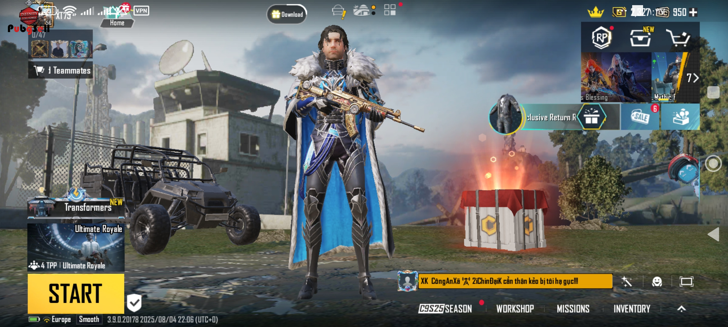 چیزای جالبی براش باز کردم مثل هلیکوپتر و اسلات های گان های لابی یه کد تخفیف 90 یوسی هم برای این سیزن داره کلا همهچیز داره اکانت واقعا خوبیه