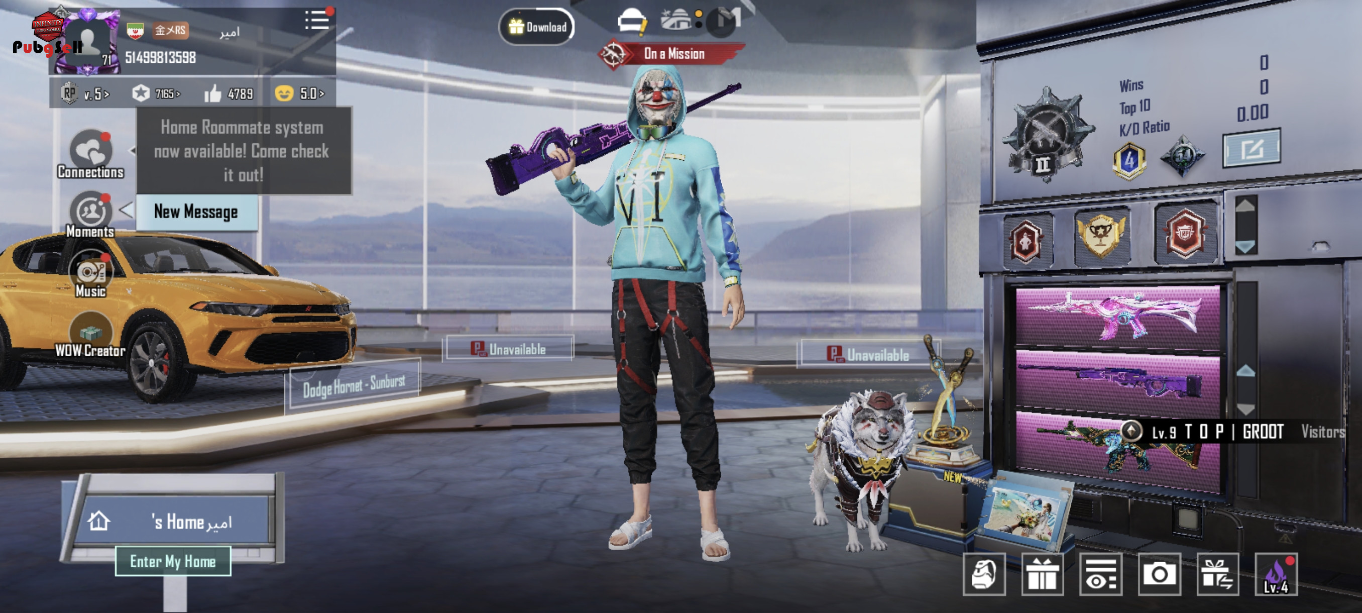 اکانت فول اسکین ماشین جبف لامبورگینی و موتور سیاه امفور تایگر لول 4 اسکارل 7لوله قرمز لول 4 ایدبل لول 4 با تمام اسکوپ ها ام 700کیل صد تیر جدید لول 1 یوامپی کیل و 5مینی متریال و 3جم متیک فرج و 20تا شکسته و 23گان ابگرتی 3جایی گان باز و 3کیف متیک و 2کلا متیک خلیی خرجش شده