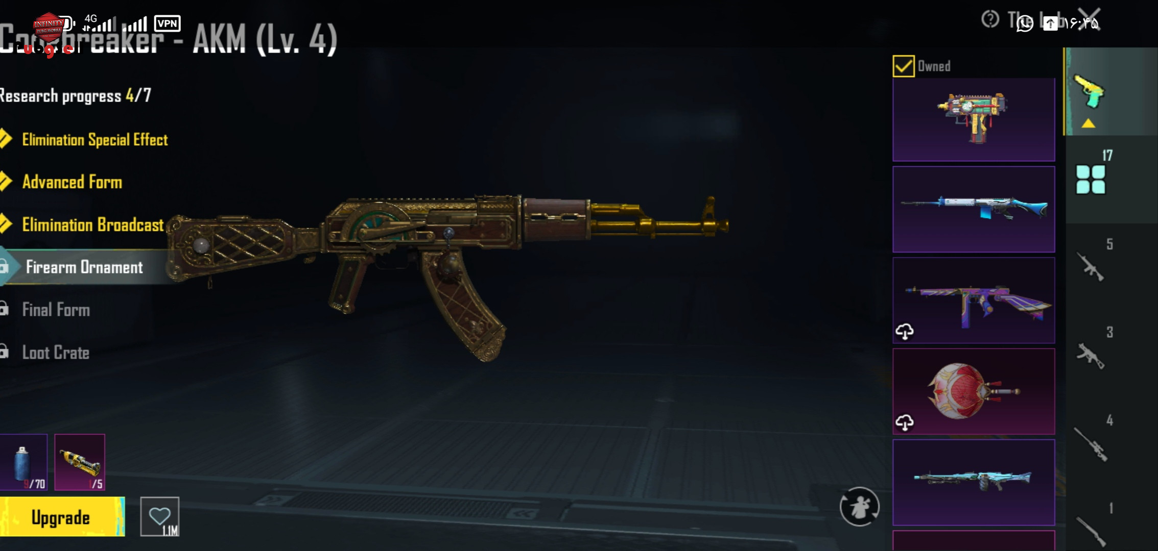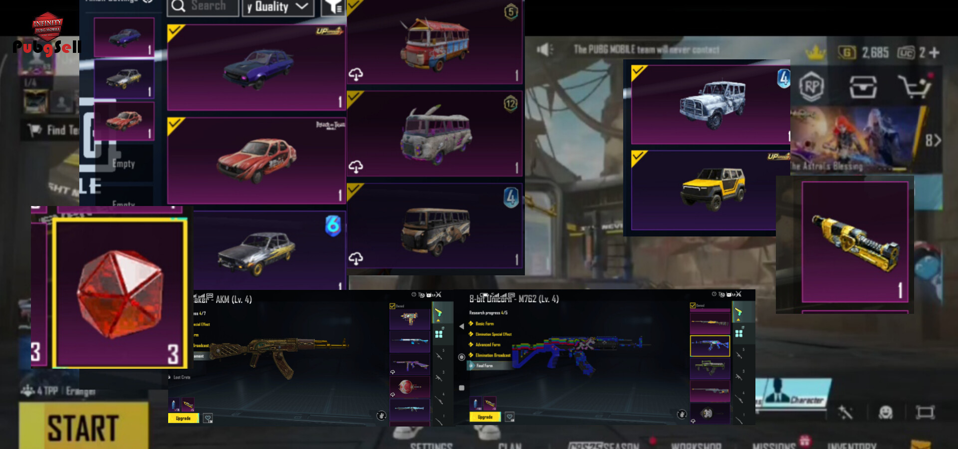 چAKM Lv.4 kill M762 Lv.4 kill MK47 Lv.1 M16 Lv.1 MG3 Lv.1 Kar98 Lv.1 Ump Lv.1 M24 Lv.1 Groza Lv.2 میشه لول سه کنی Awm Lv.1 Pan Lv.1 ♣️ گان های اپگریدی داخل آرپی: Thompson Lv.1 SLR Lv.1 UZI Lv.2 Pan Lv.3 kill Ns 2000 Lv.1