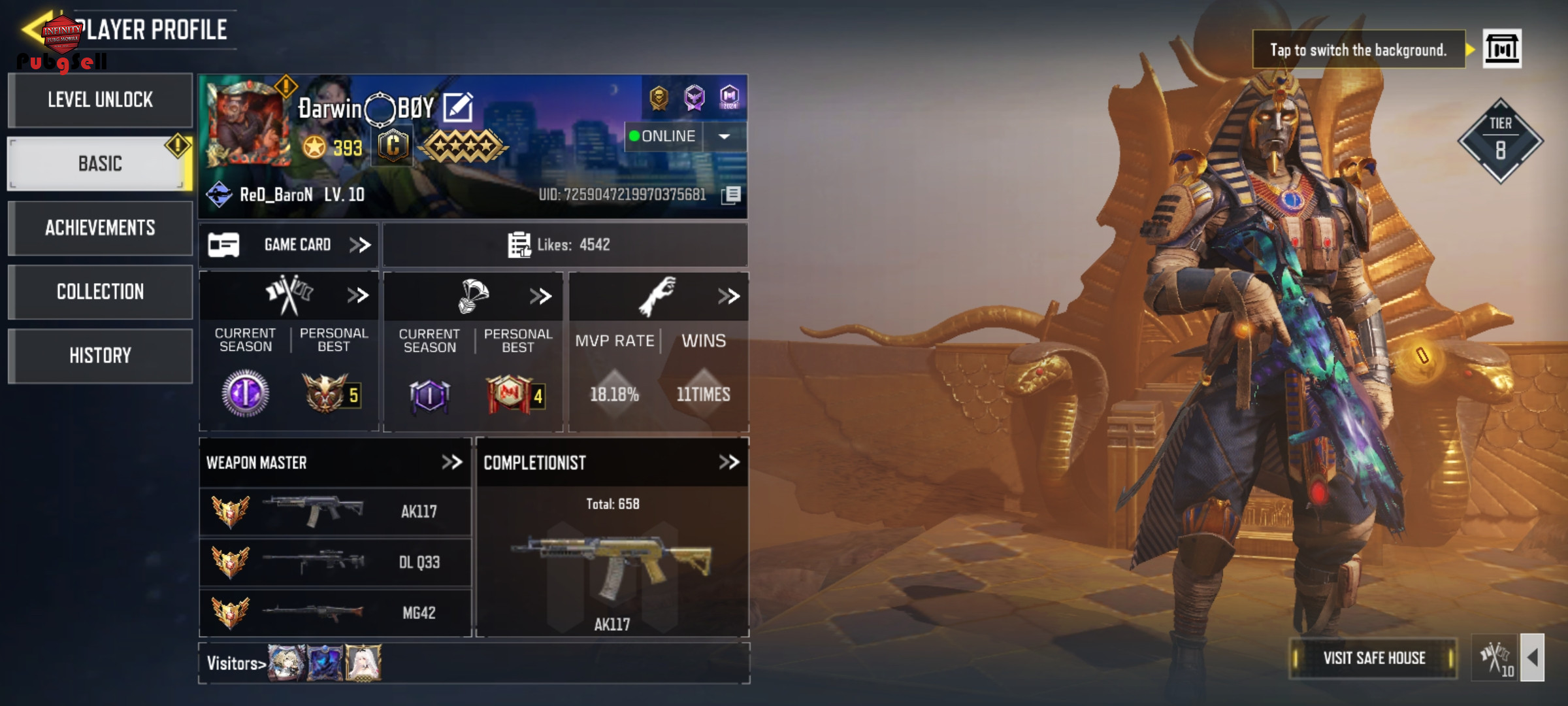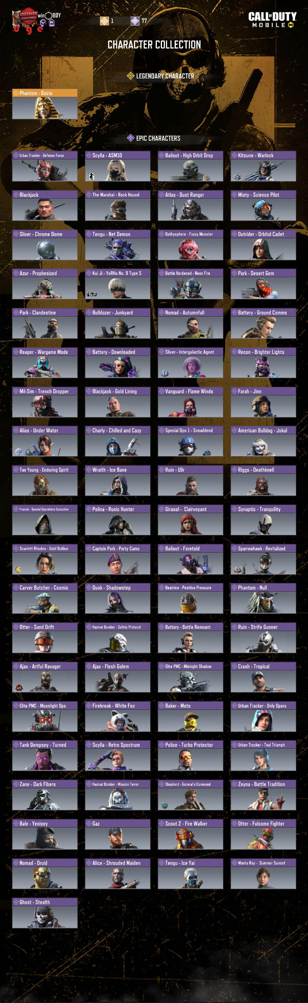 اکانت داری فرعون لجند دارای نید لجند داری 7گان لجند خیلی سی پی خرجش کردم گردونه دارک شپرد زده شده ووو