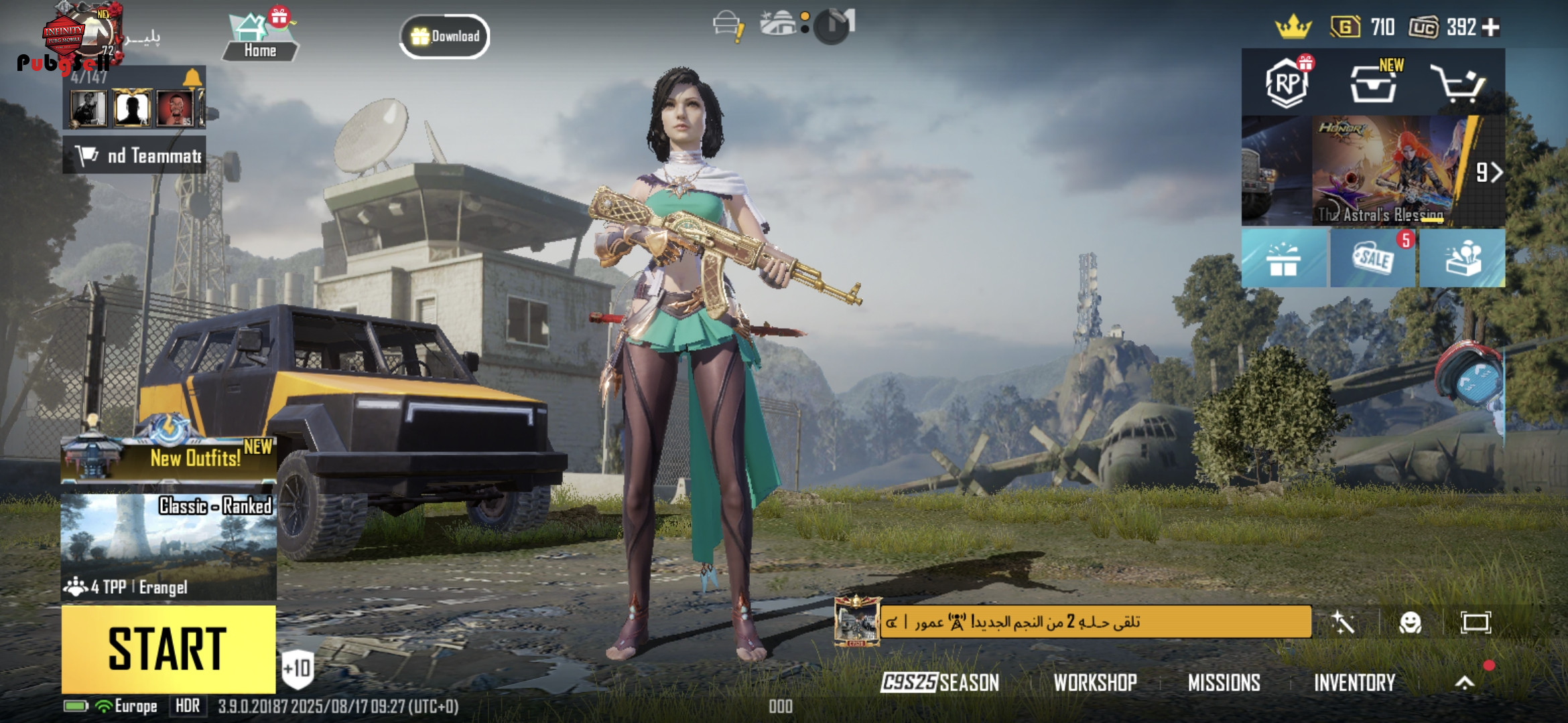 🔥 از سیزن 15 پلی داده شده 🎯 کالکشن 49 👩 کاراکتر: سارا 🚗 ماشین: آپگریدی ⚡ 🚁 اسکین هلیکوپتر 💃 رقص متیک: 26 🆔 کارت آیدی: 2 💰 28 هزار سیلور 📦 25 تا روم هفتگی 🕹️ 58 تا روم 1 روزه 🛠️ متریال: 1 عدد کامل ✅ 🔫 گانها: 17 آپگریدی ⚡ AKM 🏹 کیل مسیج ✅ M762 ⚡ کیل مسیج ✅ UMP 💥 کیل مسیج ✅ DBS 🎯 کیل مسیج ✅