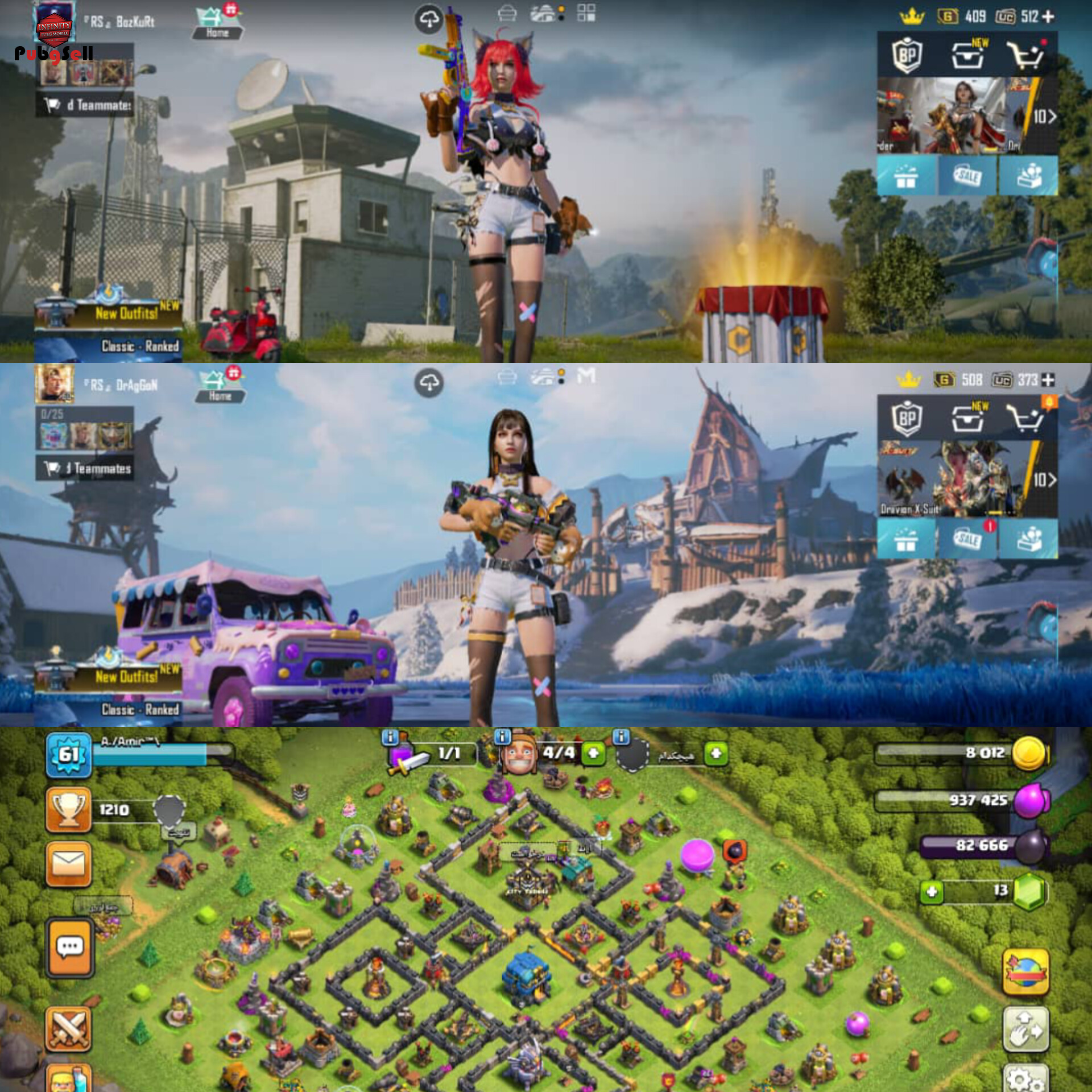 توضیحات درباره اسکین های ویژه:2 تا اکانت پابجی 1 اکانت کلش