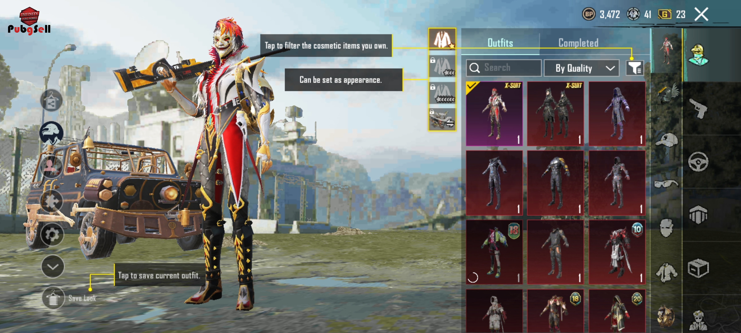 2تا X suit یکی لول دو دارای بک پک فرعون ،جوکر و.. یو ام پی موزیکال ایدبل برقی لول 4 9تا متریال 14گان آپگریدی ،دو گان کیل مسیج
