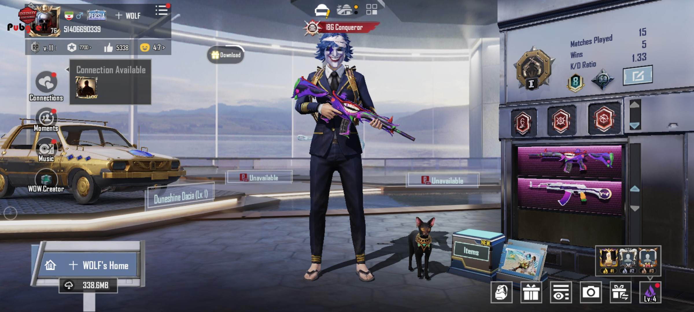 امفور جوکر لول5 ای کی ام خرگوشی 3 ام کی 700 m24 دزدان دریایی لول 4 یوزی ابگیریدی 2 تا دیپی ابگردی پن یخی کیف فرعون کیف جوکر ماسک جوکر متیک‌ تایتل متیک‌ فشن و کانک داره گربه فرعون داره و پت خرس هم داره 22 گان اپگریدی داره 12 تا غیر ارپی‌ است هلمت‌ متیک‌ داره مفت زدم