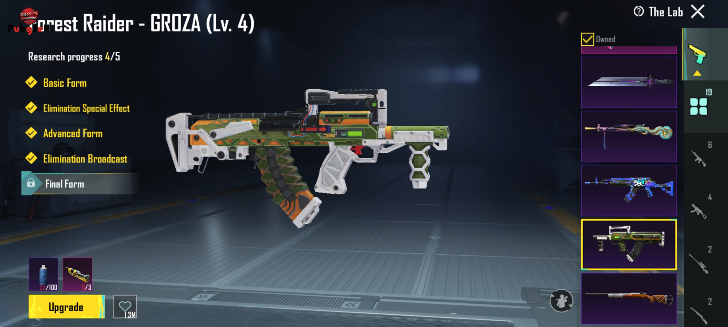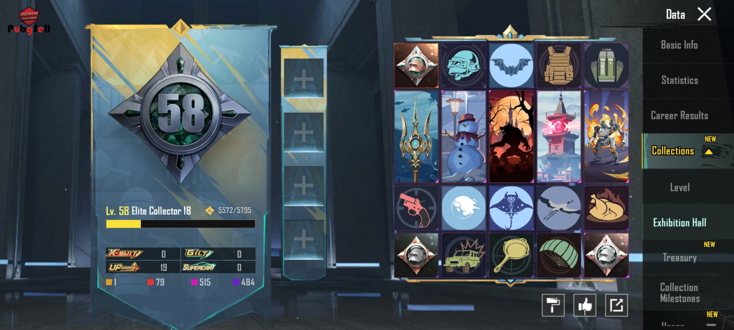 M24 LVL 4 GROZA LVL 4 M762 LVL 4 DP-28 LVL 4 AUG LVL 2 تمام گان های ارپی هم دارد که فقط UMPلول 3هست✅ کالکشن 58هست یه دونه التیمیت هم دارد پیکان ابگریدی هم داره 3تا جایگاه گان توی پروفایل باز هست اسکین هلی کوپتر هم داره ایتم های اکانت هم توی ویدیو مشخصه🙏