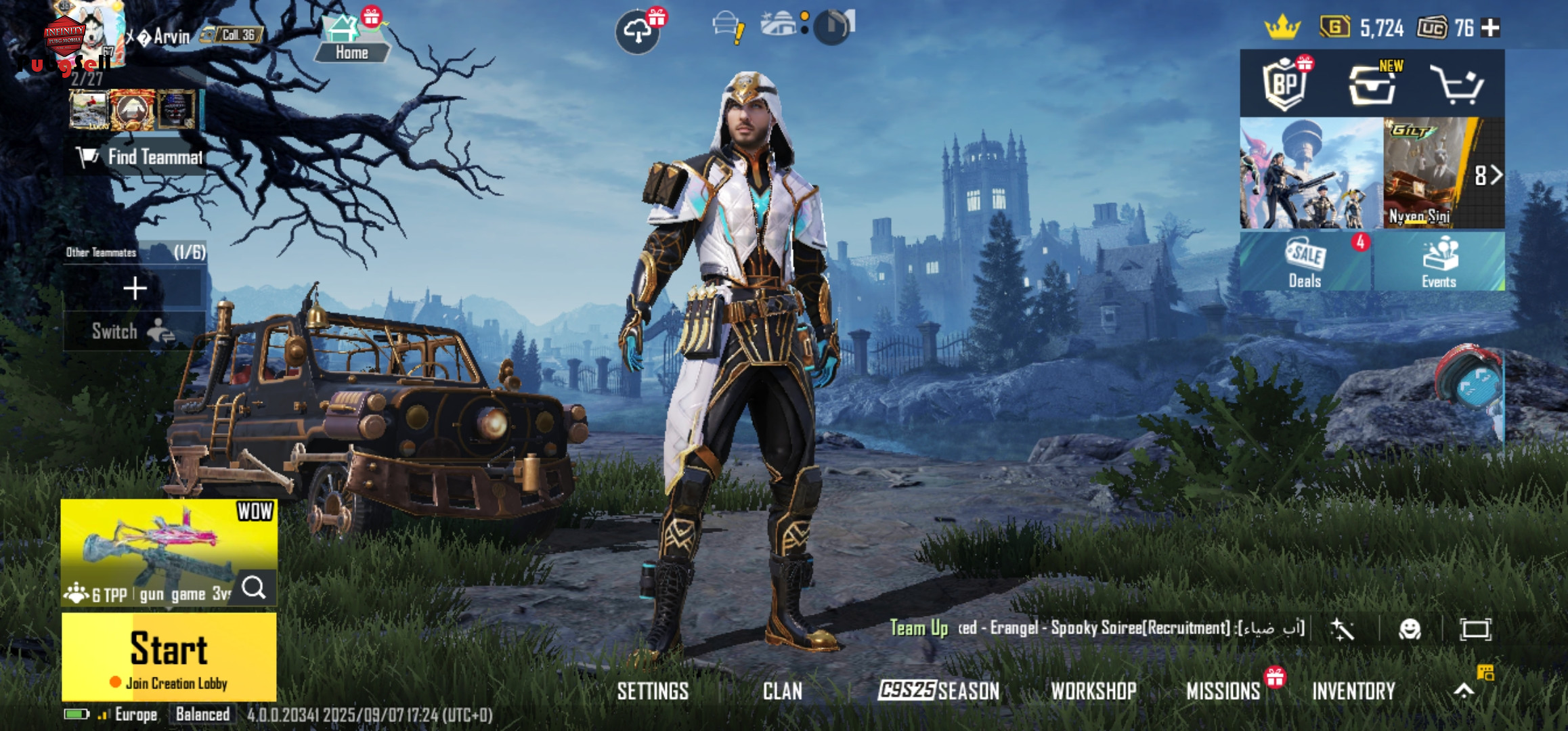 دارای کاراکتری Laith گان های ScarL صورتی مکس کیل مسیج گان UMP9 قرمز لول 1 گان شاتگان لول 1 نایف یا همون قمه لول 1 قایق هم لول 1 همه اینها با متریال میتونن کیل مسیج بشن 2 سیزن آخری مکس شده و سیزن های S18 و S19 مکس شده از سیزن 14 هم استارت خورده