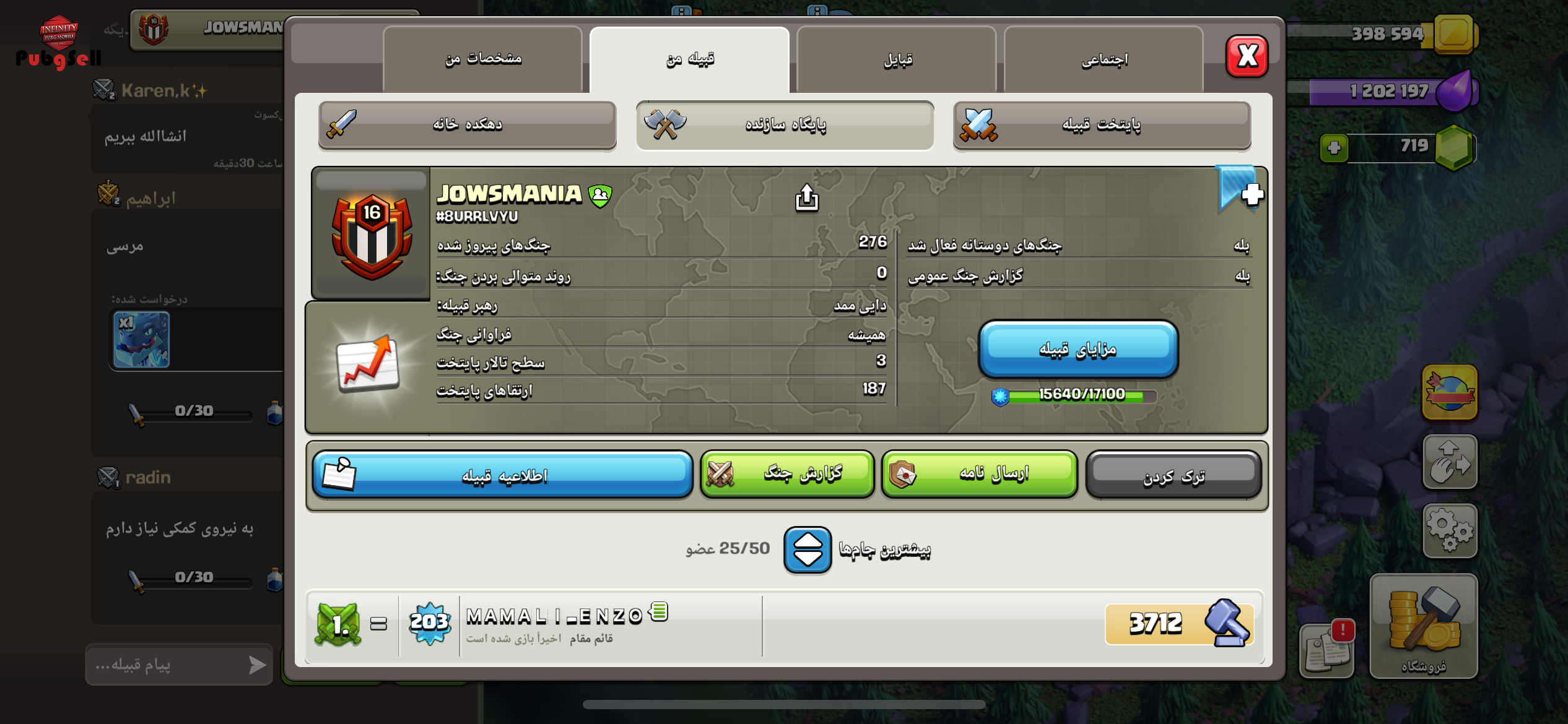 کلن فول. 100 پوینت تا لول 19 با اعضای فعال و وار زن هماهنگ