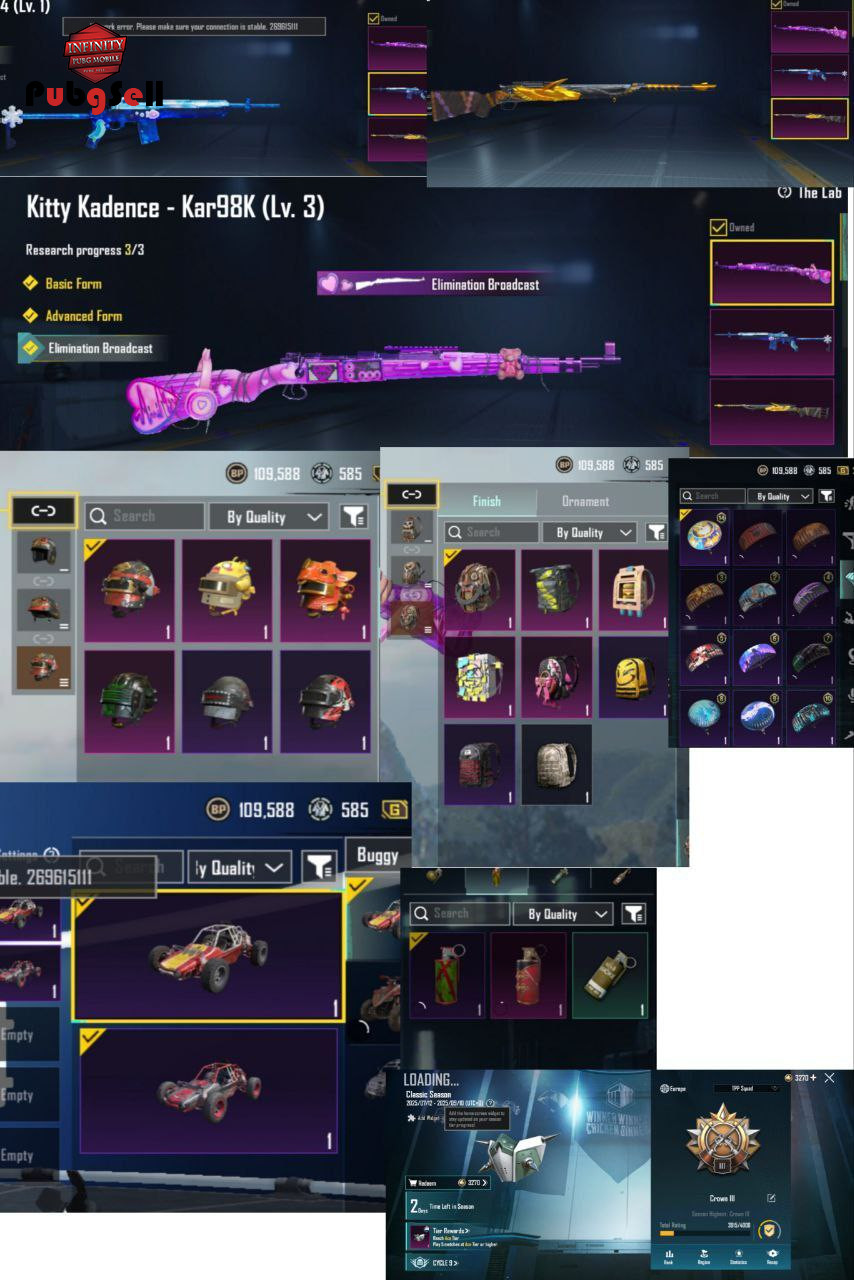 💯 لول :58 💸 تعداد یوسی :0 ⭐ سیزن های الایت: ⚜ سیزن های الایت مکس : 🏆 سیزن های کانکوئر شده : 🐔 چیکن (محبوبیت) :20K 🔐 لینک شده : ⚙️ توضیحات :87جعبه طلا15کارت نقره.17جم شکسته 🎖 آیتم های مهم : M24فرعون کار98کیل متیک فورج مینی 14یخی