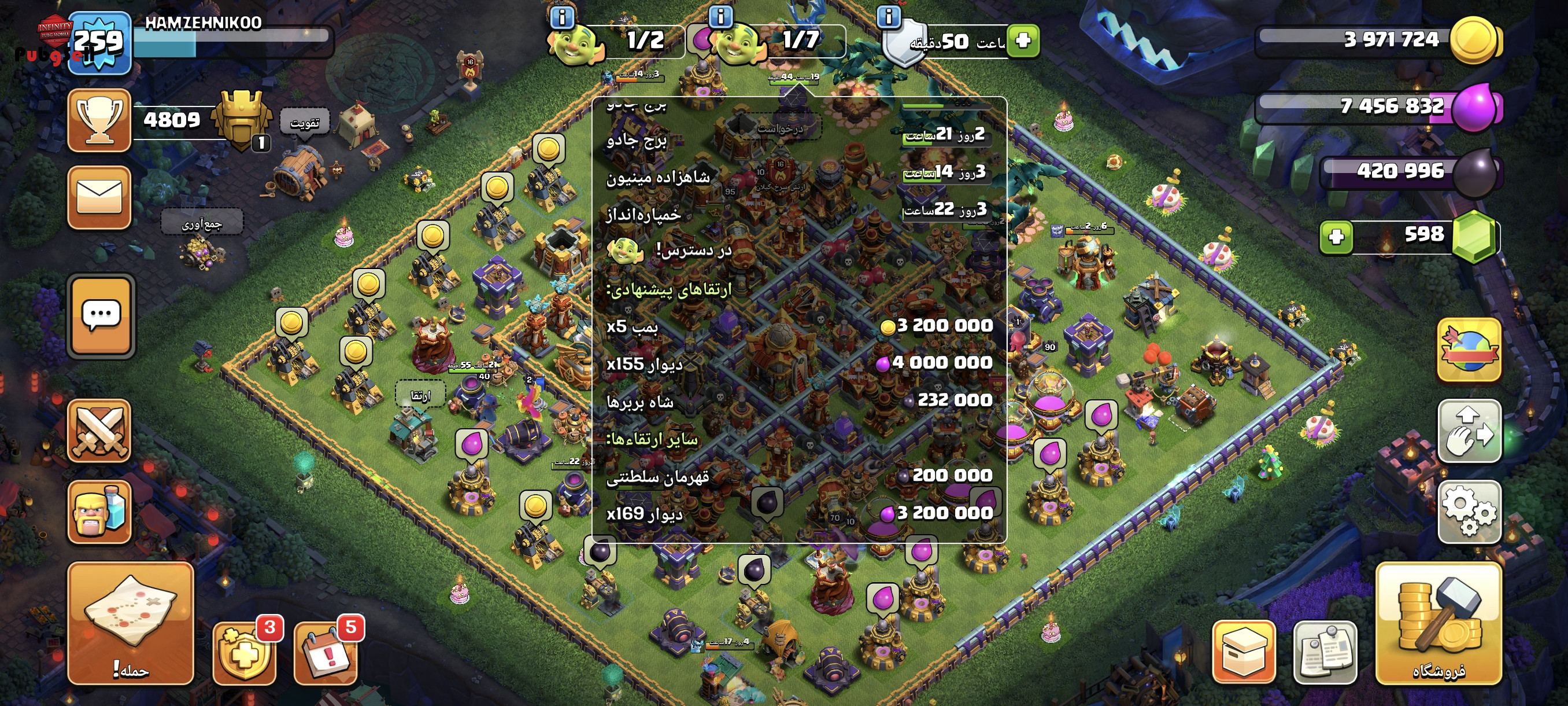 کلش اف کلنز تان 16 کاپ 6200 سال 2017 هیرو بالا مپ جز دیوار و بمب دوتا بمب انداز مونده کینگ 90 ملکه 95 شاه میمون 72 نگهبان بزرگ70 قهرمان سلطنتی 40