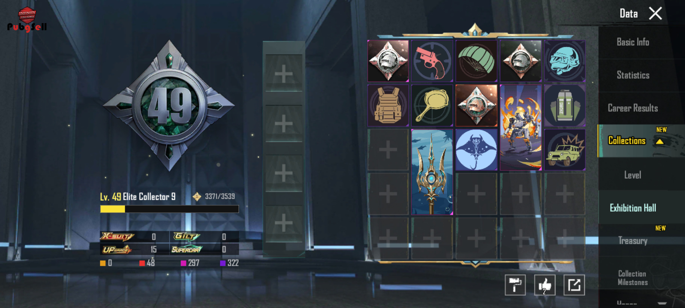 اکانت دارای کالکشن 49 با 48 عدد متیک و 4 عدد متیک فورج و 3 متریال کامل با 3 تیکه