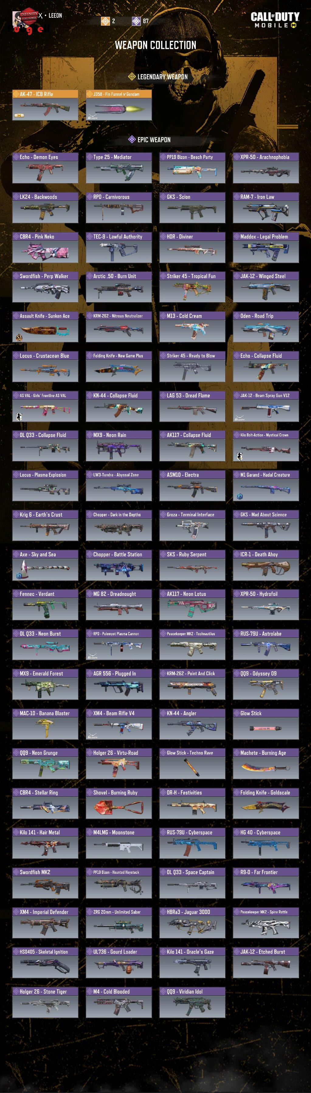با سلام اکانت خوبی هست 7تا بتل پس داره بعد 2تا اسکین دل کیو رو داره 100فکر کنم گان اپیک داره دو تا لجند 22 سیپی داره 2تانایف گردونه رو داره