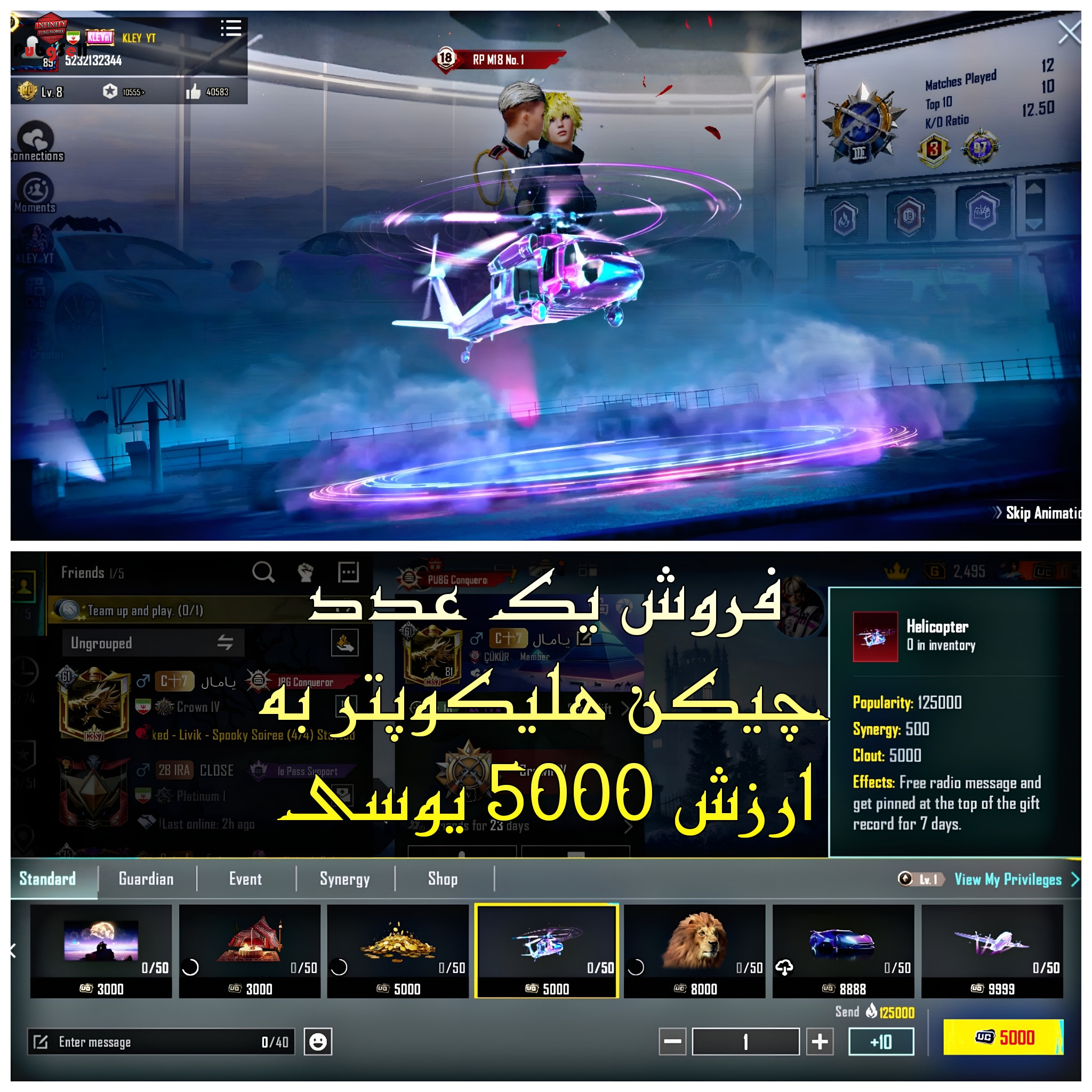 چیکن هلیکوپتر + 10 کا چیکن دیگه روی اکانت نمیدم فقط میفرستم بعضاً میان میگن با اکانت بدع😂