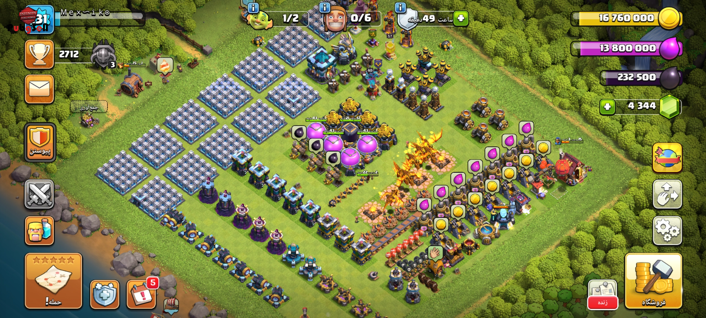 اکانت کلش لول131 5 تا سازنده تاون هال 13 30 درصد مکس ولی 12 100 درصد مکس بیلد هال درحال ارتقا به 7 4300 تا جِم اسکین بربر