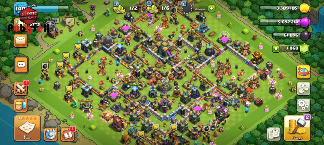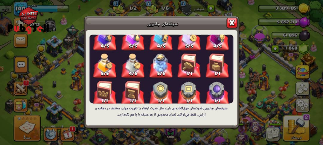 سلام اکانت عالی لول 140 کینگ 52 کویین 65 واردن 45 رویال 15 1710مدال لیگ داره 1900جم داره همه کتاب ها و چکش ها و اسپل ها رو داره نیرو قوی تان 14 تغیر نام رایگان داره تو عکس مشخصات هست