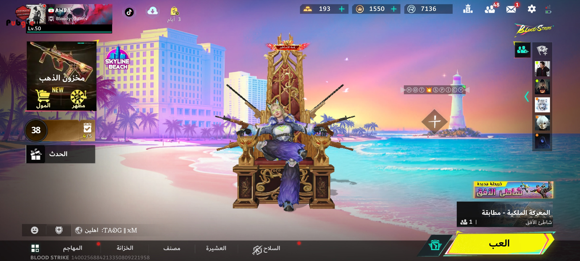 2 ساله هروز وارد حساب میشم ی دونه ایونت هم ازم رد نشد همشون تکمیل 😁 کولی اسکین داره ویدیو گرفتم ولی طول میکشه و سایت ویدیو بیشتر از 50 مگ قبول نمیکنه خیلی خیلی اسکین داره لباس تفنگ کیل مسیج همه چی داره دنس