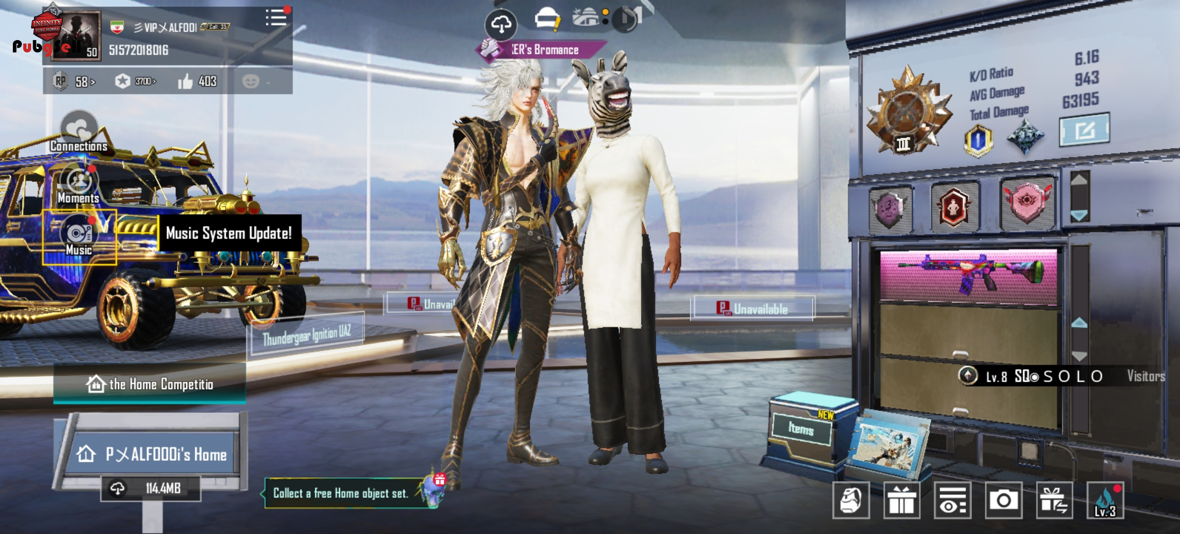 اکانت خوش شانس گادد ماشین متیک داره لباس ایکس سوت داره و ام شونزده اسکلتی داره و ام فور جوکر کیل مسیج هم داره و کلییی چیز دیه