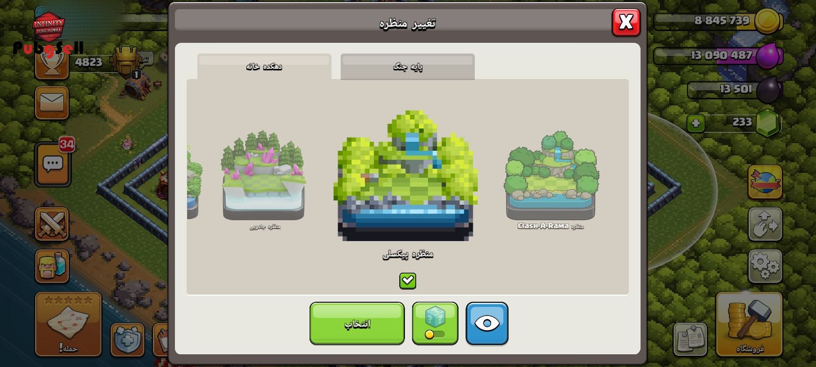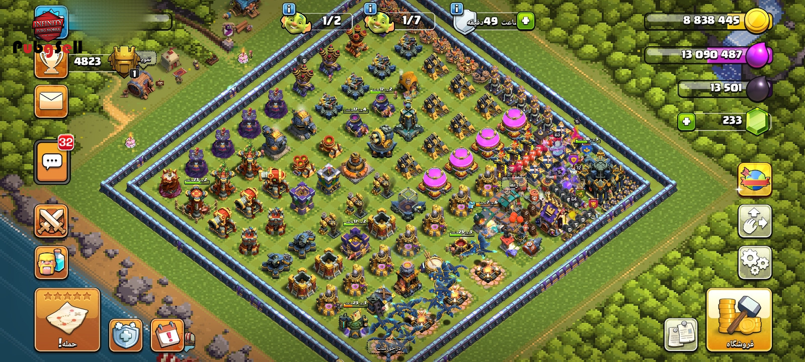 اکانت تقریبا دفاعی ها مکس شده نیرو ها هم بیشتر شون مکسه تمام ابیلیتی ها رو داره که مکس شدن همه قهرمان اسکین دارن با منظره پیکسل کینک پیکسل