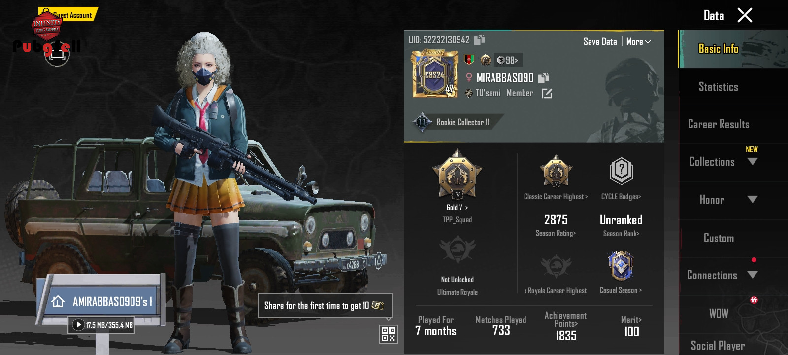 نام اکانت پابجی موبایل: ABBAS PJR 001