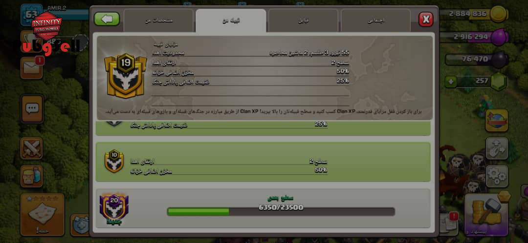 نام اکانت پابجی موبایل: کلن لول 19 کلش آف کلنز مفت گذاشتم. پول لازمم