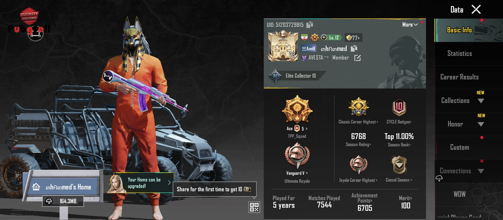 اکانت 14 تا گان اپگریدی داره که 4 گان کیل مسیج هستن و 3 گان لول 4 و 16 تا اسکین ماشین که 4تا از آنها اپگریدی هستند داشتن لباس زندان و......