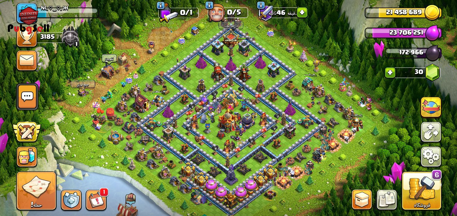 سلام دوستان اکانت کلش آف کلنز یا لول 141 تانی 16 دارای توپ و آینه جادوی گلوله آتشی و چکمه برقی فول تقویت شده میباشد خدای مفت گذاشتم پول لازم استم مبارک خریدار..