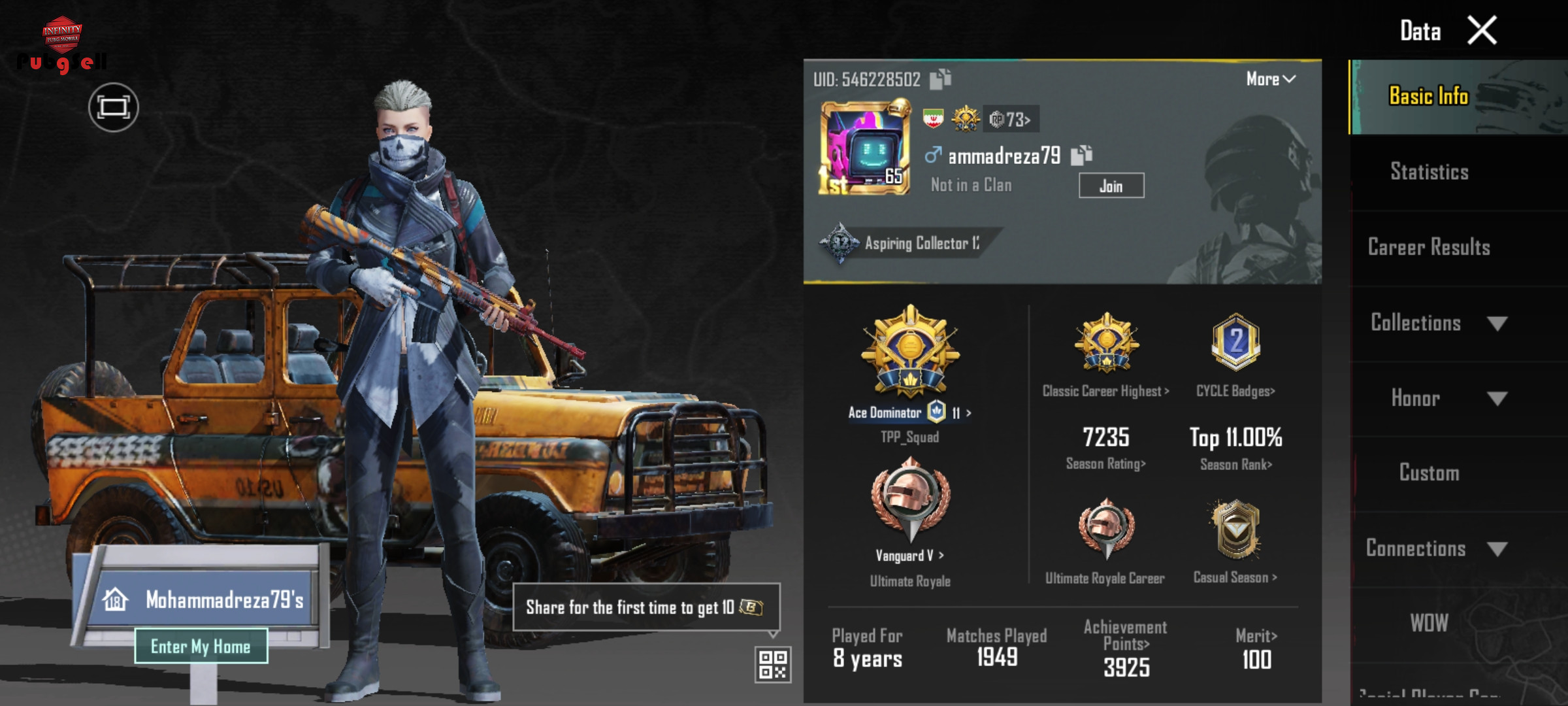 این اکانت هشت سال پیش ساخته شده دقیق بخوام بگم همون روز اول بیرون اومدن بازی این اکانت بوجود اومده