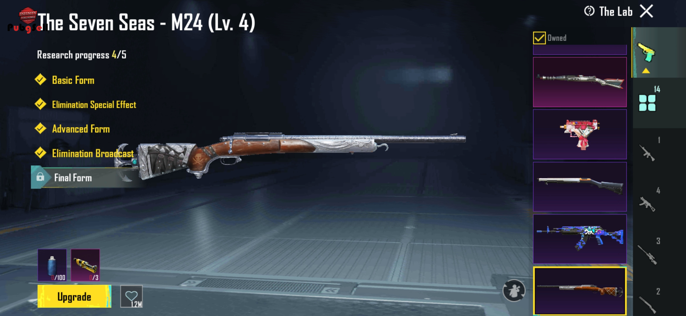 اکانت 14 تا گان آپگریدی داره که 6 تاش مکس اکانت کانکور شده ام 700 کیل مسی ام 24 کیل مسیج یوزی لول 3 دی پی لول 2 کار 98 جعبه طلایی لول 2 با تمام اچیومنتها شادگان قدیمی لول 2 هلمت متیک ماسک سیزن 2