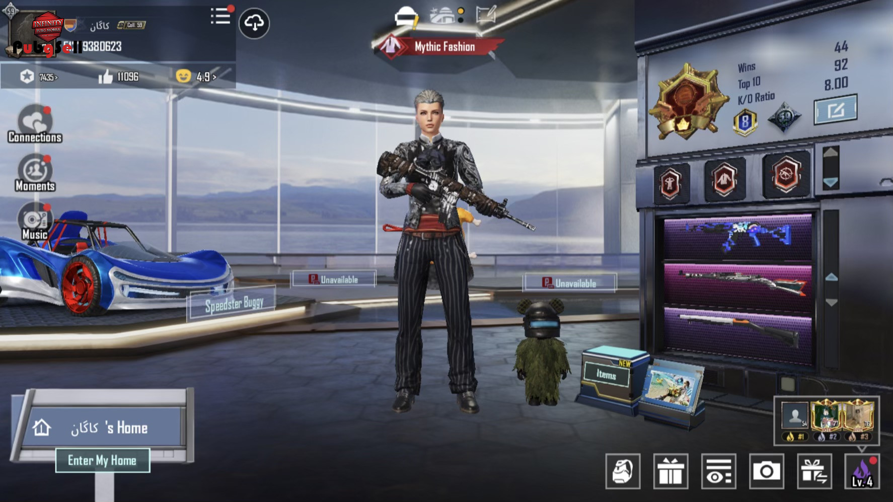سلام اکانت خوش شانسی هستش دارای 2 متریال 10 مینی متریالی متیک فورج 14 تا گان آپگریدی دارای اسکینهای جذاب هلمت و بگگ کلی آیتمهای خفن دارای 17 تا ماشین چیکن و کلی چیکن دیگه اکانت از اول دست خودم بوده و خیلی خوش شانس هستش و دارای فیس و مو سیزن 4 البته اسکین جذاب و قدیمیترم داره