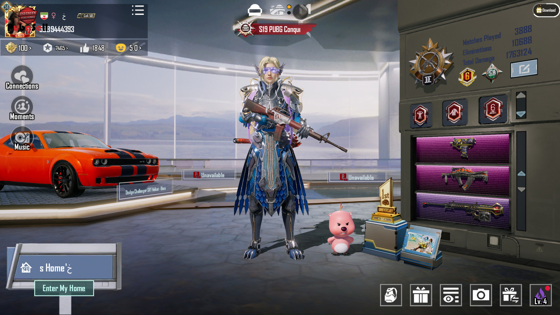 اکانت از سیزن 13 قدیم پلی شده لول کالکشن 58 ست آپگریدی پوسایدن لول 1 دوج چلنجر قرمز 35 گان آپگریدی که فقط 9 تاش برا آرپیه 6 ماشین آپگریدی 6 سیزن کانک 507 یوسی 71 متیک 18 تاش غیر ارپیه ست متیک فضانورد دنس دار و کونگ متیک دنس دار کیف متیک فرشته که 9 جم متیک فورج خرجش شده 1 عینک التیمیت هواپیما سیزن 6 ست کاپیتان بجز کلاه و ست آناناسی بجز لباسش رو داره هودی و جاکت الن واکر و کلی ست تی دی امی خاص پت کمیاب 2 افکت گان تی دی ام یک کارت تغییر اسم دائمی 3 جم کامل متیک فورج و 7 شکسته 3 متریال کامل گان و 4 مینی و 239 اسپری 6 متریال کامل ماشین و داسیای شارک 96 کریستال شاپ 336 لاکی کوین و 140 پت کوین پک ویس اترو و اسپانیایی و عربی پک ویس متیک پیکولو دراگون بال و خیلی پک ویس های دیگه کاراکترها آنا سارا ویکتور همه مکس با 392 کارت کاراکتر بیش از 63هزار چیکن و 1345 وت خونه بیش از 170 جعبه طلایی 7465 اچیومنت پوینت سه جایگاه گان باز ایدی تو عکس ها هست کالکشن هم بازه میتونید خودتون اکانت رو ببینید ماشین های آپگریدی: Goldensand Apex Buggy (Lv.3) Sweet Reverie Convertible (Lv.1) Dunshine Dacia (Lv.1) Night Phantasma UAZ (Lv.1) Cosmic Jump Motorcycle (Lv.1) Castle Dacia (Lv.1) گان های غیر آرپی: Chained Inferno – UZI (Lv.1) Burning Godzilla – Groza (Lv.2) Burning Godzilla Tomahawk (Lv.3) Golden Talon – P90 (Lv.1) Onyx Blizzard – AMR (Lv.1) Graffiti Street – M249 (Lv.1) Data Kitten – DP28 (Lv.1) Atomic Trigger – S12K (Lv.1) Kitty Kedence – Kar98 (Lv.1) Bunny Munchkin – AKM (Lv.1) Pumpkin Carol – Groza (Lv.1) Shenron – DP28 (Lv.1) Soaring Dragon – MG3 (Lv.1) Gilded Galaxy – Mk14 (Lv.1) Gilded Reaper – Vector (Lv.1) Bit Blast – UMP45 (Lv.4) Codebreaker – AKM (Lv.1) Snowcapped Berg – SKS (Lv.1) Dazzling Sun – QBZ (Lv.1) Winter Queen – M249 (Lv.1) Aurora Pulse – M16A4 (Lv.1) -Bit Unicorn – M762 (Lv.4) Operation Tommorow – Scar-L (Lv.1) Candy Cane – Thompson SMG (Lv.1) The Seven Seas – M24 (Lv.4) Blood & Bones – M16A4 (Lv.1) گان های آرپی: Candied Haunter – MP7 (Lv.1) Chow Blaster – Scar-L (Lv.3) Rustborn Strider – NS2000 (Lv.1) Patchmetal Bunny – Mk47 (Lv.1) Thornrose Dawn – M16A4 (Lv.3) Tundra Knight Dagger (Lv.1) Spirit Sentry – UZI (Lv.3) Seadream Melody – SLR (Lv.1) Nightscape Gladiator – PP-19 Bizon (Lv.1)
