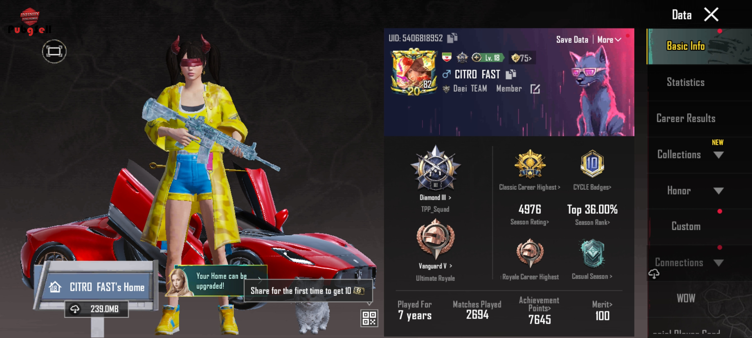 ببین اکانت نابی هستش کمیابه 3گان مکس داره اکانت کلاسیک پلیری و تی دی ام هستش 4متریال 2تا داره 2تا هم میتونی با پوینت لاک اسپین بخری 3تا جم متیک فورج