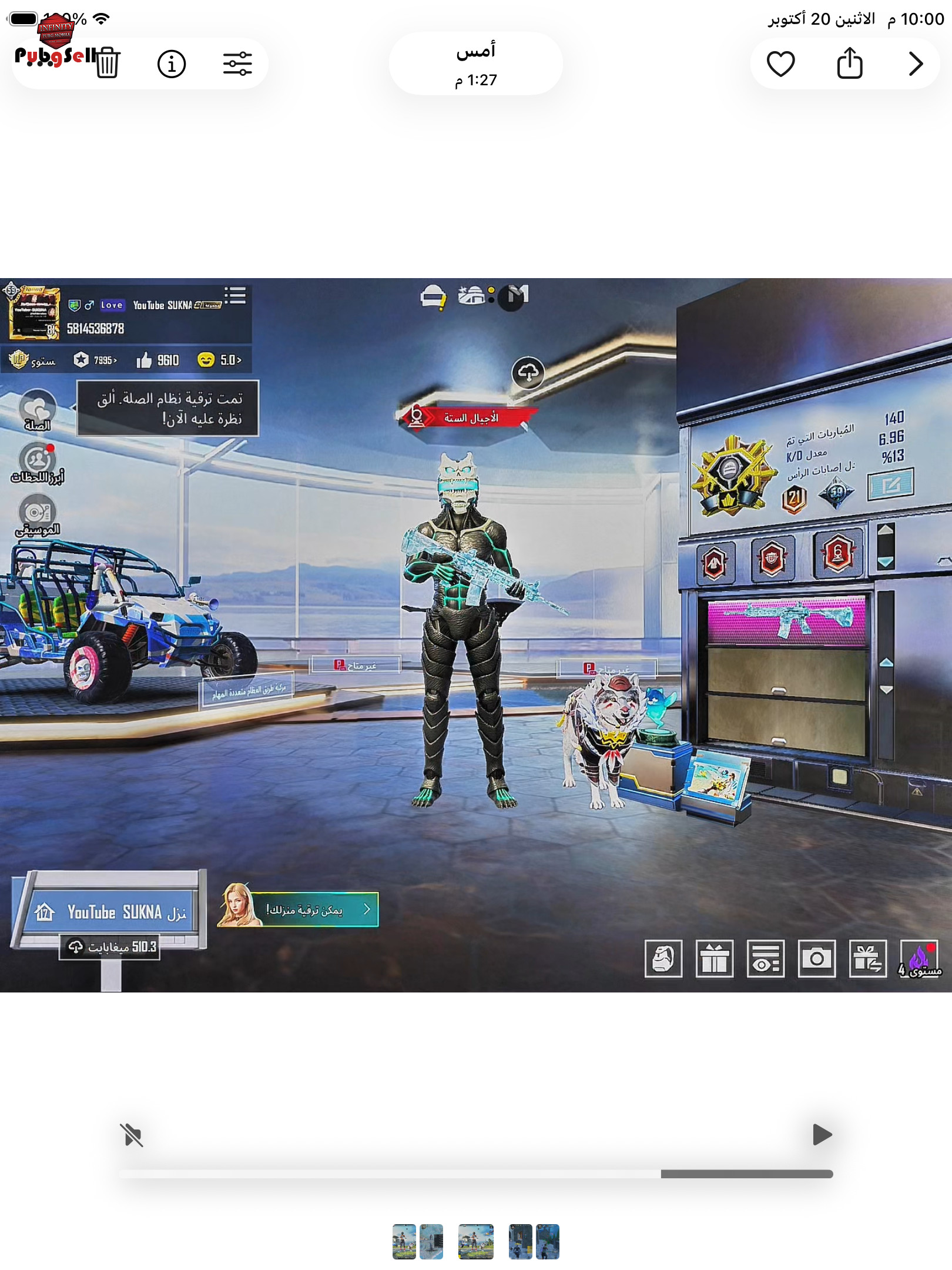 نام اکانت پابجی موبایل: يوتيوب سكونا