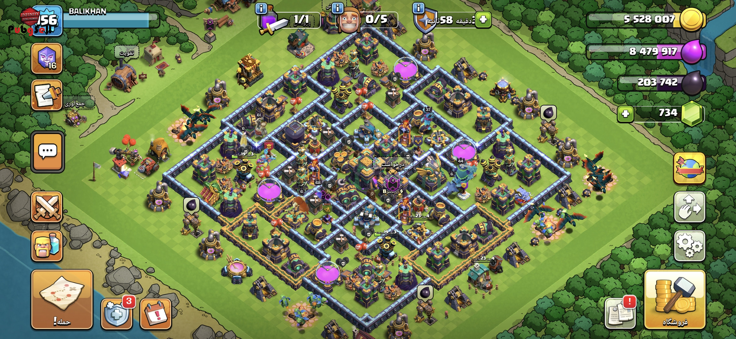 اکانت تان 14 هست و همه چی در فیلم و عکس مشخصه و من آیدی اکانتم هم میگذارم تا ببینید و پایگاه سازنده هم تان 8 هست و یه کلن لول 12 هم همراه اکانت هست👈آیدی اکانت : QVQLU9CP2