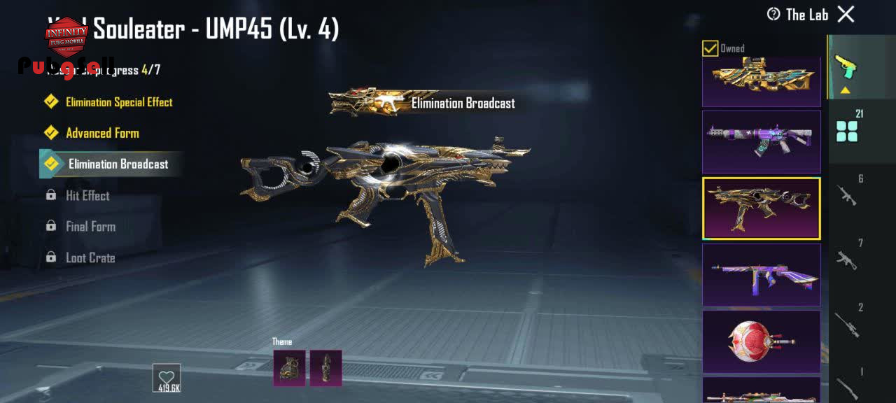گان های امفور یخی کیل و ام هفتصد یونیکورن کیل پی نود فرعون کیل یو ام پی ایکس سویت کیل و گان های یوزی گودزیلا و ام 24 و دی پی و ام جی تری و کروز هم داره ای کی ام لول 2. همراه با دوتا متریال و نزدیک به 85 تا جعبه طلایی و 360 تا یوسی برای الایت سیزن بعد هم داره