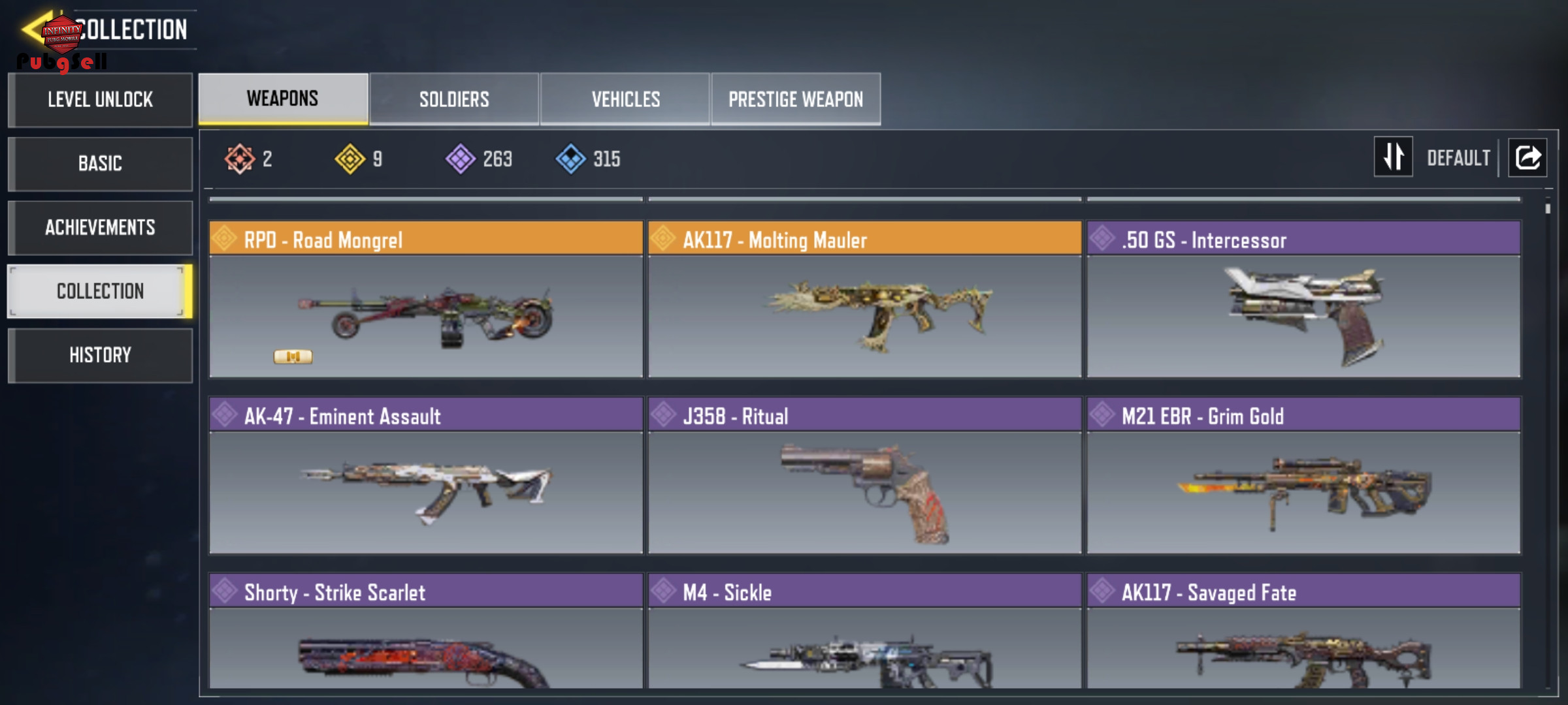 اکانت کاملاً عالی گان اودن متیک لول 2 داره M4 لجند گردونه داره ak117 لجند گردونه داره ارتری داره ویوان هریس مشکی داره و کلی گردونه خورده