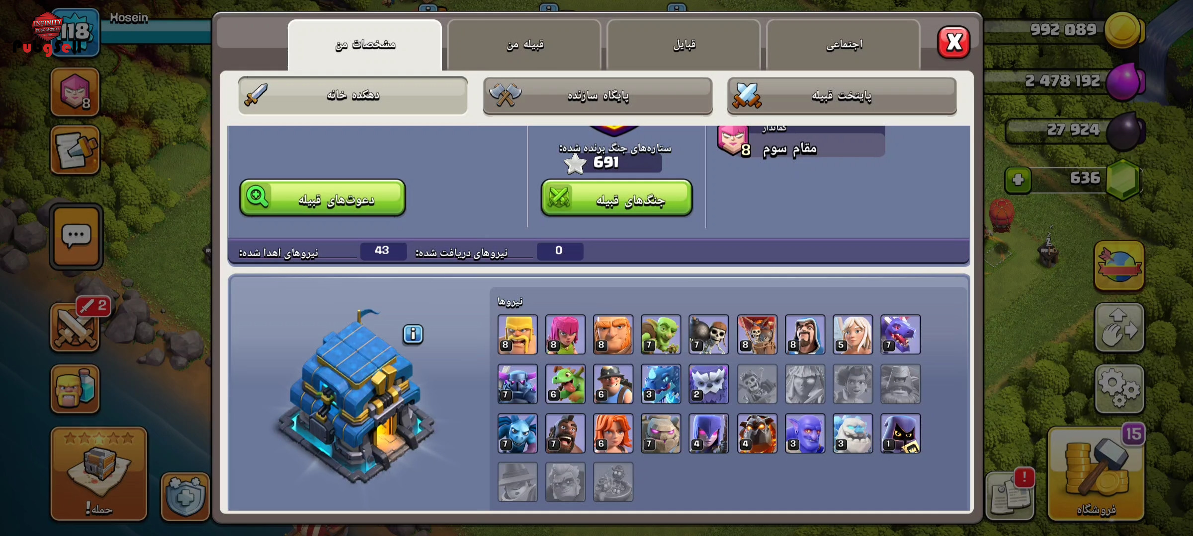 ی اکانت عالی تانهال12 مکس فقط دیوار مونده هیرو ها و نیرو ها لول آپ .. جوون پسند