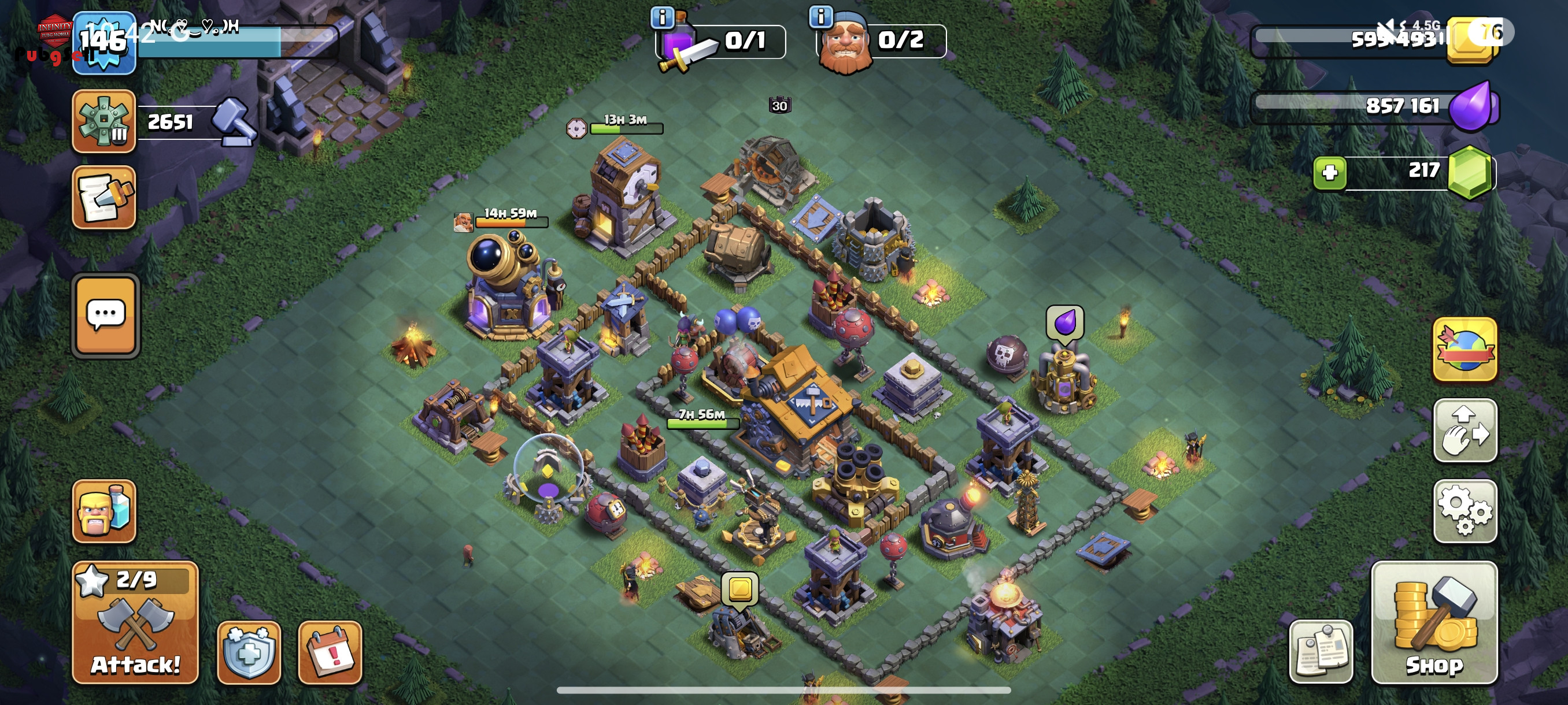 اکانت کلش آف کلنز تان 16 نیمه مکس بیلدر دفاعی ها همه فوله ی جلد کینگ 600 ببر