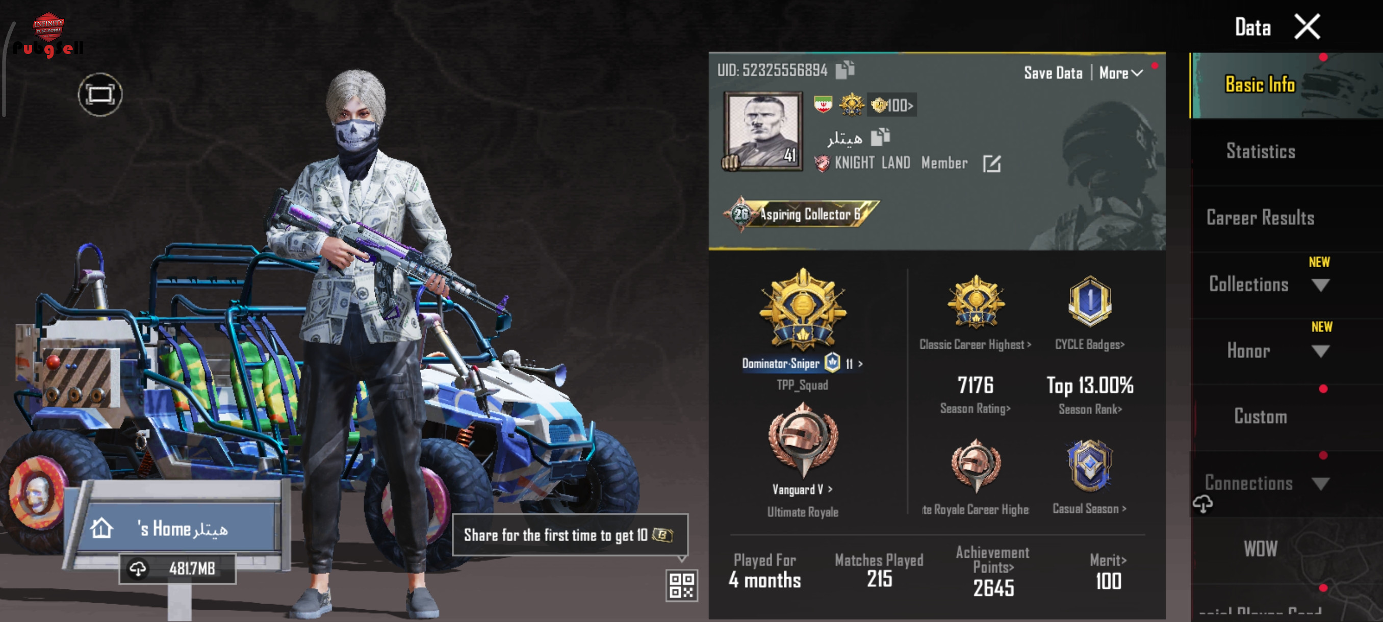 اکانت خوبی هست قیمت خوبه پول لازم یوسی داره برای الایت الان 360 یوسی 500 تومنه