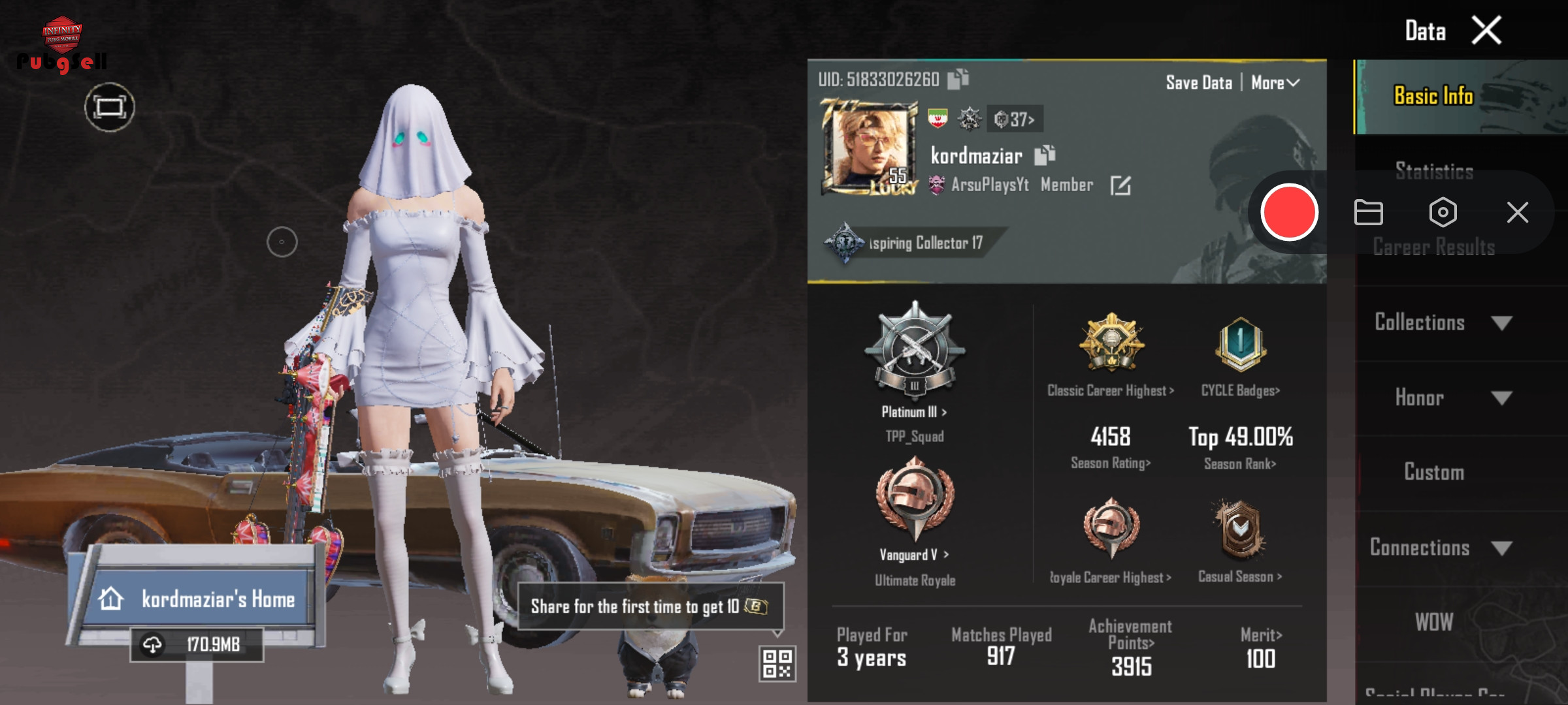نام اکانت پابجی موبایل: Kordmaziar