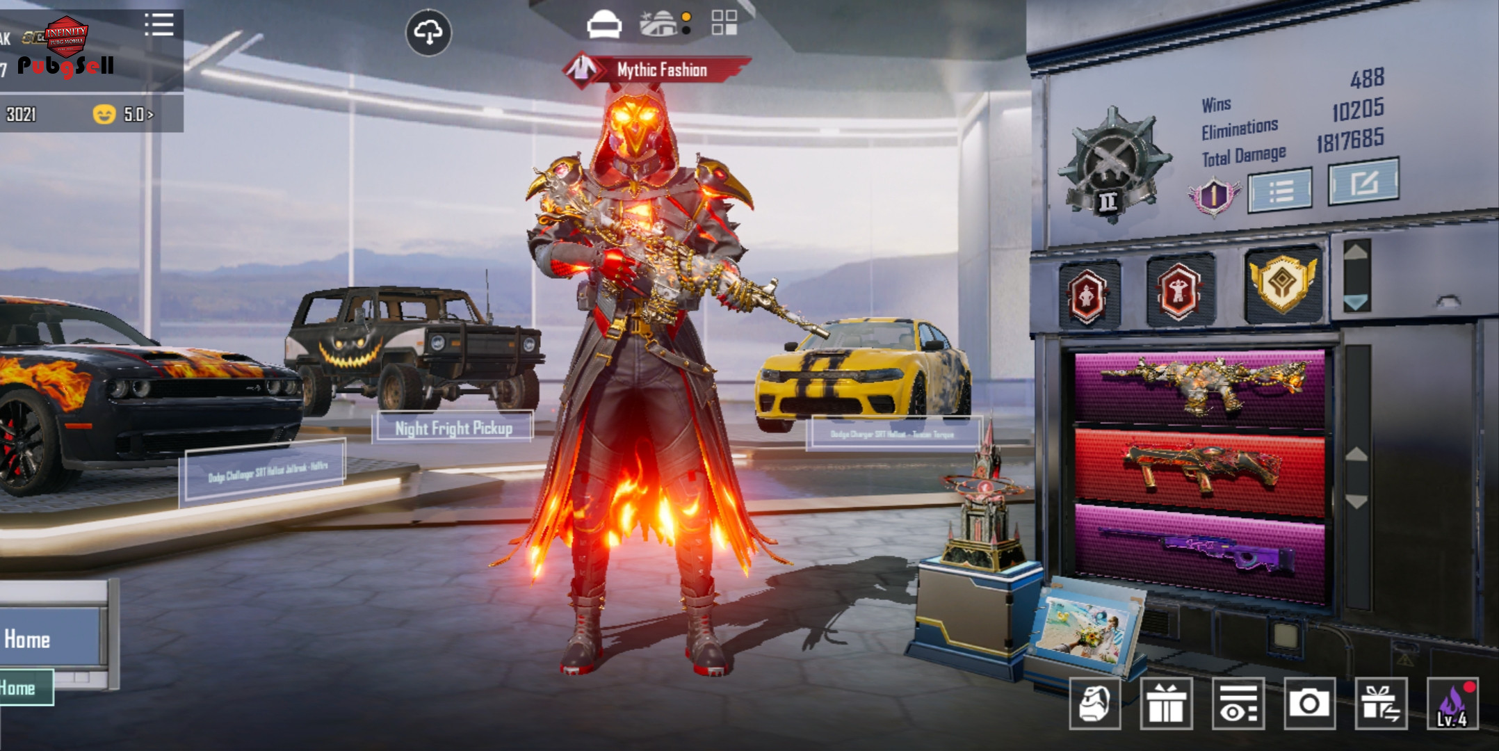 28 تا ایتم آپگریدی داره که 7 تا کیل مسیجه (الایت زیاد شده داخل ویدیو گذاشتم) (17 تا ایتم از متیک فورج گرفته شده) دوج مشکی و زرد و ماشین تیتان و جیپ لول 2 خانه لول 27