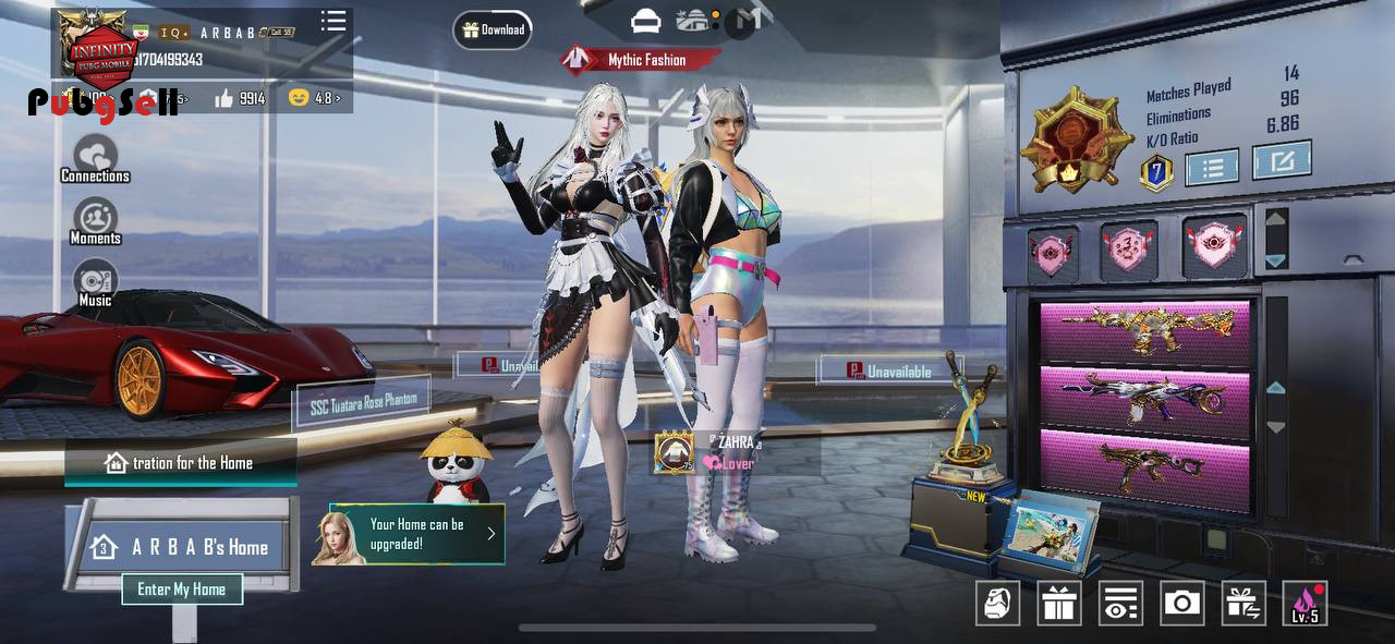 اکانت بسیار خوش شانس و همه چی تمومیه Silver Guru - M416 (Lv. 6) Folly's Clasp - SCAR-L (Lv. 4) Void Souleater - UMP45 (Lv. 4) Golden Talon - P90 (Lv. 4) 8-bit Unicorn - M762 (Lv. 4) Field Commander - AWM (Lv. 1) The Seven Seas - M24 (Lv. 4) Ethereal Emblem - UZI (Lv. 4) Kitty Kadence - Kar98K (Lv. 3)max Burning Godzilla Tomahawk (Lv. 3)max Predator Protocol - M249 (Lv. 1) Soaring Dragon - MG3 (Lv. 1) Snowcapped Berg - SKS (Lv. 1) Midnight Rose - Vector (Lv. 1) Forest Raider - GROZA (Lv. 1) Enigmatic Hunter - DP-28 (Lv. 1) ♣️ گان های اپگریدی داخل آرپی: Marine Evolution - UMP45 (Lv. 3)max Faerie Luster - Pan (Lv. 3)max Drakonbane Remnant - Machete (Lv. 2) Chow Blaster - SCAR-L (Lv. 1) Candied Haunter - MP7 (Lv. 1) Rustborn Strider - NS2000 (Lv. 1) Patchmetal Bunny - Mk47 (Lv. 1) Nightscape Gladiator - PP-19 Bizon (Lv. 1) Lilac Finesse - Thompson SMG (Lv. 1) Panthera Prime - DBS (Lv. 1) Circus of Screams - Crossbow (Lv. 1) 👘 ست های اپگریدی: Anukhra X-Suit (2-Star) Ignis X-Suit (2-Star) Golden Pharaoh X-Suit (1-Star) Dravion X-Suit (1-Star) 🚘 ماشین اپگریدی Boldline Cruiser UAZ (Lv. 1) Goldensands Apex Buggy (Lv. 2) Duneshine Dacia (Lv. 1)