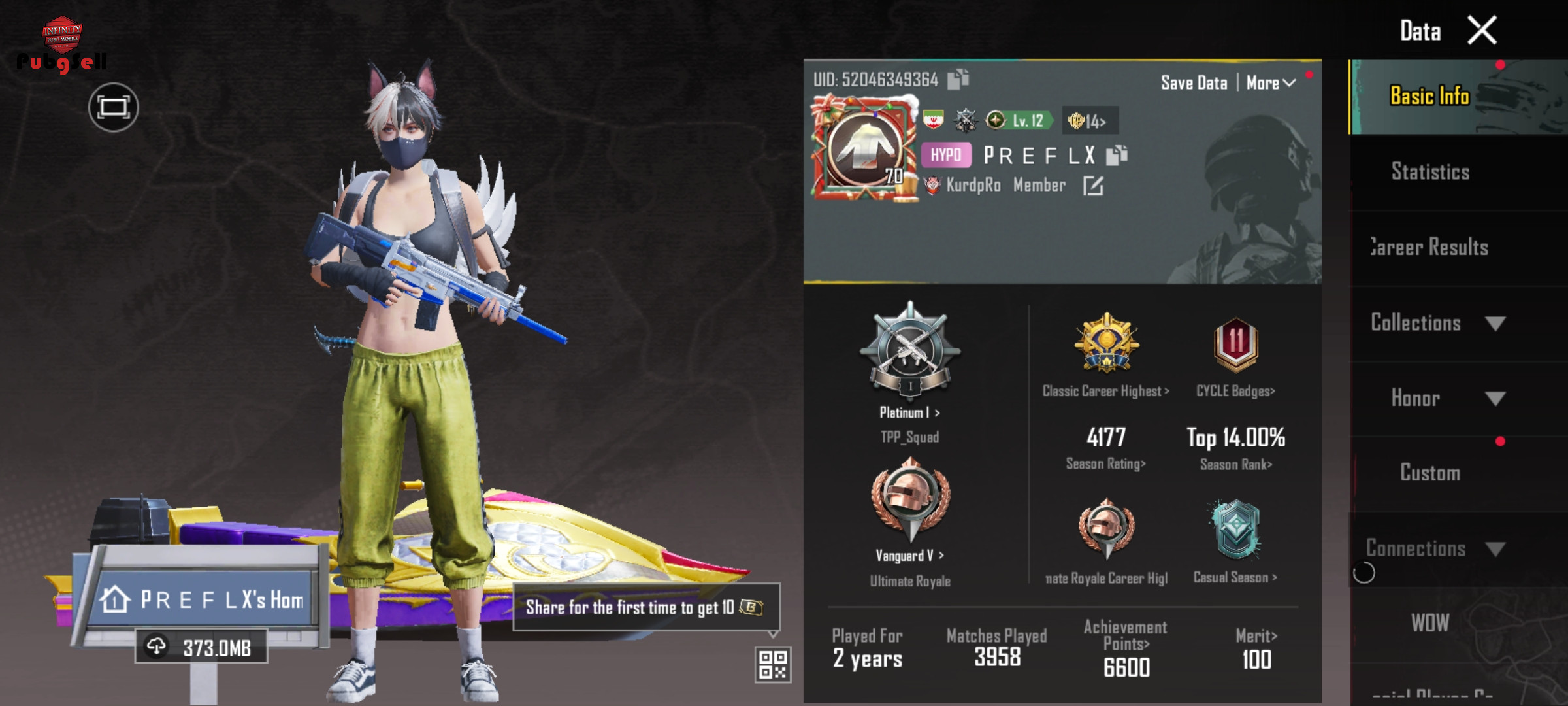 نام اکانت پابجی موبایل: 9IP R E F L X
