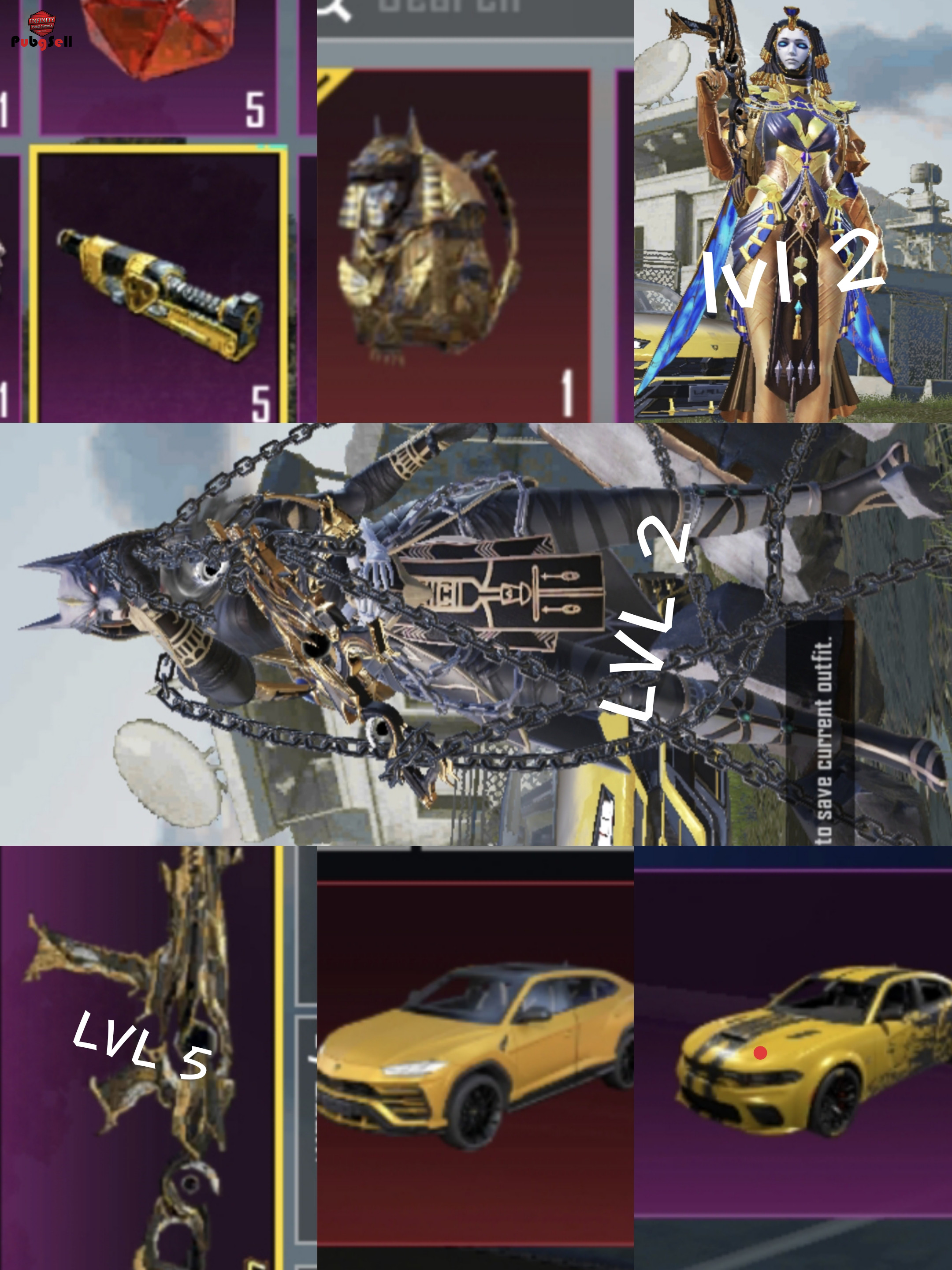 لامبورگینی زرد کیل مسیج دوج چارجر زرد چهار در ایکسویت انوخرا لول 2 ایکسویت زلیخا لول 2 یو ام پی انوخورا لول 5 6 متریال کامل که میتونید یو ام پی رو لول شش کنید بک پک فرعون متیک لباس متیک زن فرعون پنج جم متیک فورج اکانتو هرکی میبینه میفهمه حداقل 30 خرجش شده مناسب بالا اوردن و سرمایهگذاری