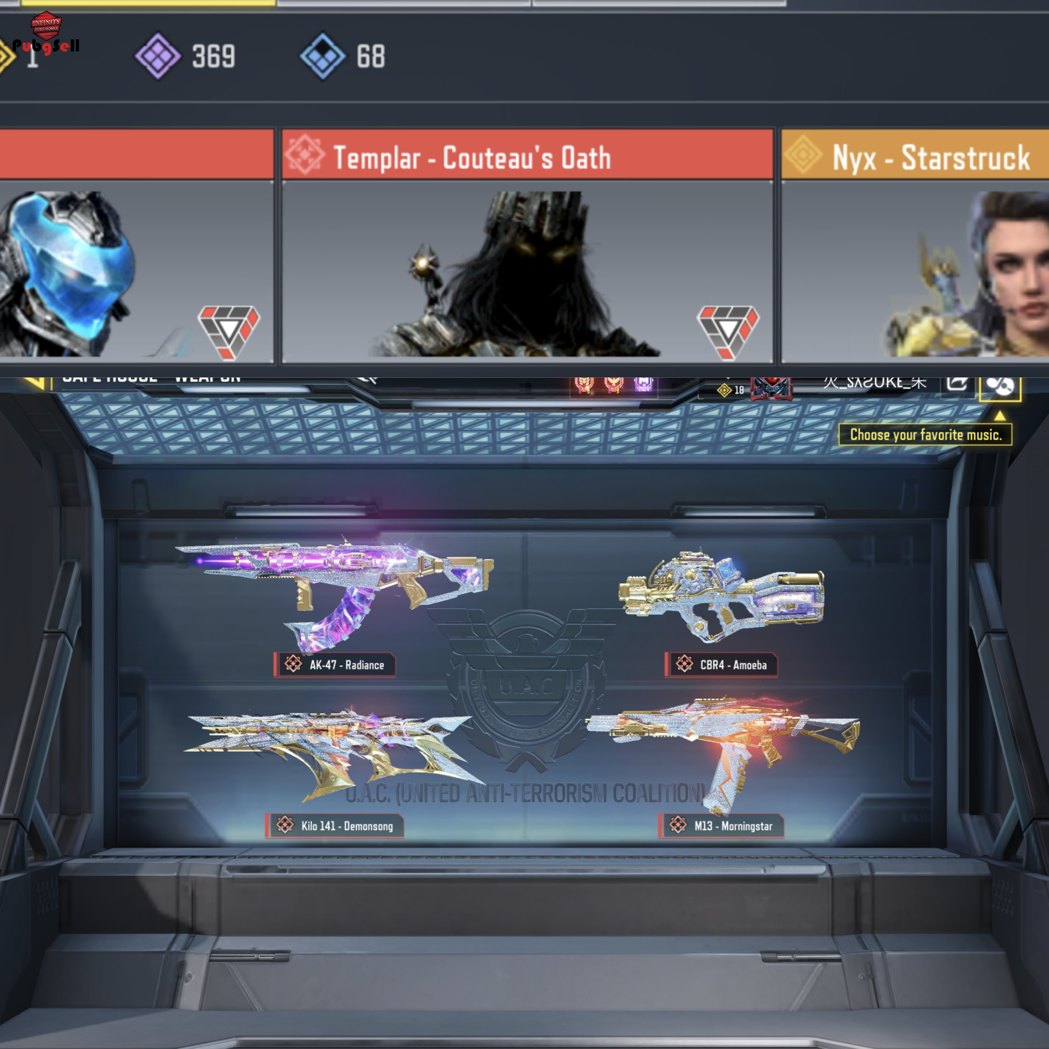 🆔 6894662672793927681 🎖Battle Royale: 24 Legend 🎖Multiplayer: 18 Legend 🔴Spectre - T3 L.4 🔴Templar - Couteau's Oath L.4 🔴Kilo141 - Demonsong L.1 🔴CBR4 - Amoeba L.2 🔴M13 - Morningstar L.3 🔴AK47 - Radiance L.3 🔴 Switchblade X9 - Neon Legend L.2 🔴 Ak117 - Lava Remix 🟡Nyx - Starstruck 🟡AK47 - Kuromaku 🟡PP19 Bizon - Homebrewed Hex 🟡DLQ33 - Zealot 🟡M16 - Targonite3 🟡HS0405 - Songstress 🟡KRM262 - Glorious Blaze 🟡PP19 Bizon - Oath's Defiance 🟡DRH - Kurohana68 🟡M4 - Black Gold Royal 🟡QQ9 - Melting Point 🟡LK24 - Deadly Petals 🟡AK47 - ICB Rifle 🟡CR56 AMAX - Bass Drop 🟡J358 - Fin Funnel V Gundam 🟡RUS 79U - Mystical Lamp 🟡RPD - Road Mongrel 🟡Stun Baton - Surge Baton 🟡Purifier - H2S04 🟡Spectre's Shadow Balde 🟡Spectre's Quick Strike 🟡Templar's Kinetic Armor 🟡Nyx's Care Package 🟡Kinetic Station 🟡Trip Mine - Phantom's Keep 🟡Smoke Grenade - Whorl of Midnight 🟡Thermite - Meteoric 🟡Molotov Cocktail - Soul Flame 🟡Contact - Grenade 🟡C4 - BOM11 🟡EMP - Light Array 🟡Cryo Bomb - Cryo Dragon 🟡Gas Grenade - Archtoxin 🟡Echo Grenade - Comet 🟡Stim Shot - Angelic Depths 🟡Wingsuit - Soaring Blaze 🟣Operator: 348 🟣Weapon: 668 🟣Dance: 120 (Lord of death) 🟠CP: 449 ( BP Tire:6 ) 🟠Battle Pass: 65< 🟠Mythic Card: ~400 🟠Mythic Coin: 10 🟢C: 152350 🟢Gold Crate Coupon: 190 🟢Daily Legendary Weapon Offer: 5 🇮🇳Region: India 🔐Save: Activation