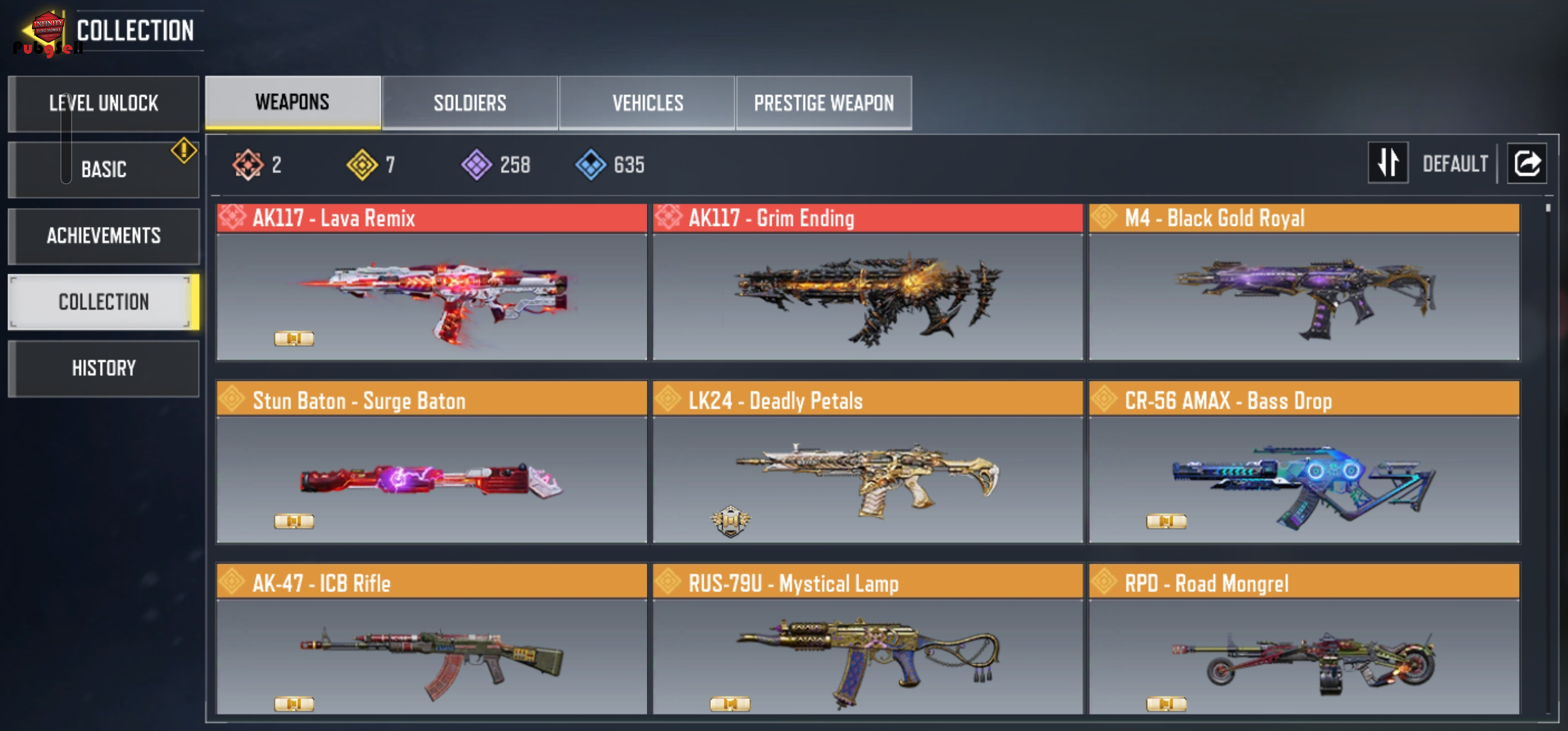 2 گان متیک و 7 گان لجند با گان های اپیک و اسکین های اپیک و 5 بتل پس