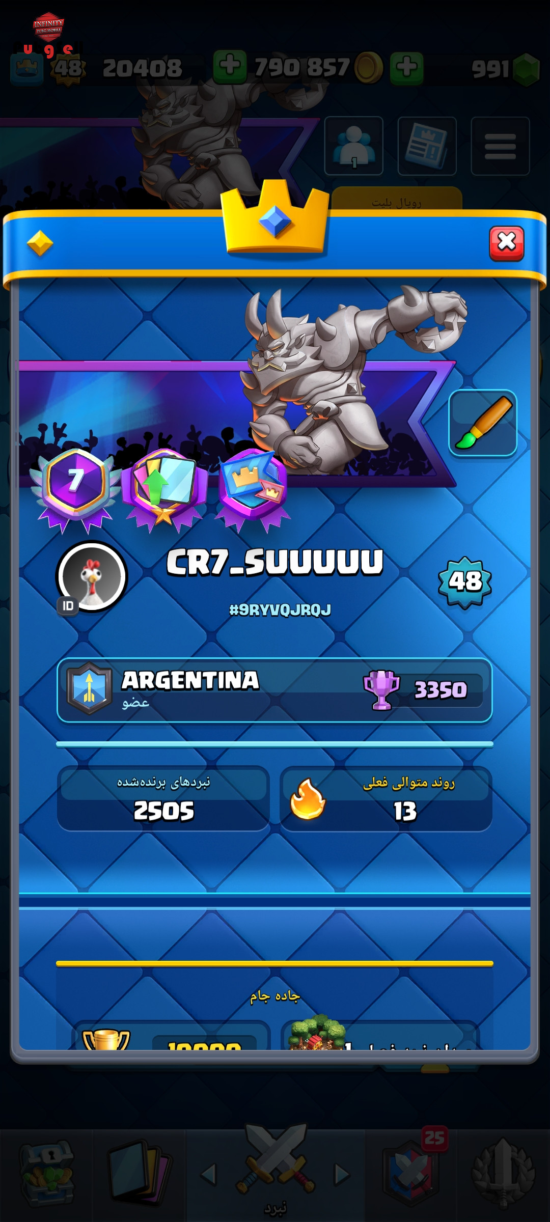 ( بر روی این جمیل یک اکانت کلش آف کلنز هم هست که آن را هم بر روی کلش رویال اشانتیون میدهم لول 100 تاون هال 12)