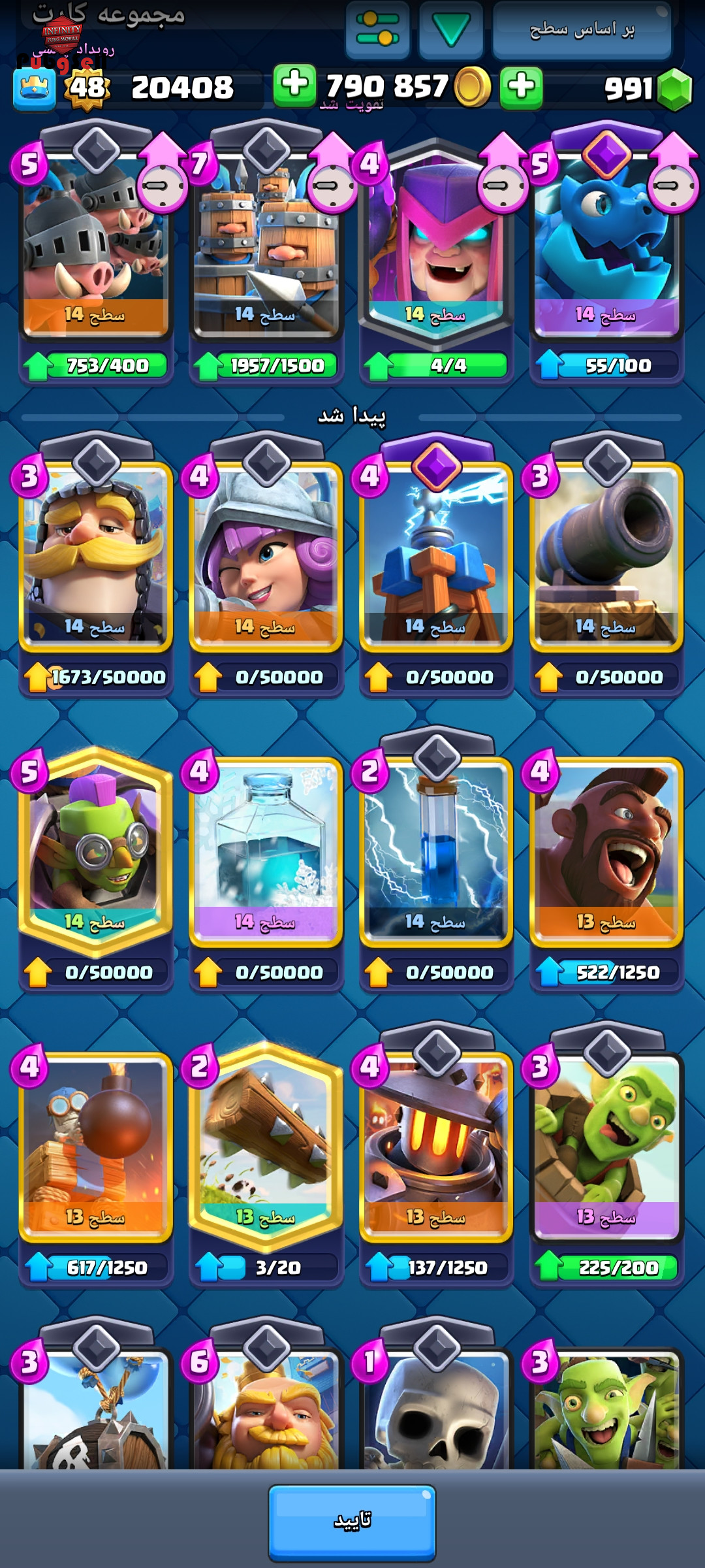ترکیب اصلی کارت ها با لول 15 و 14 هستند